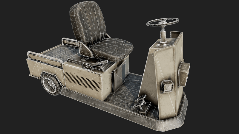 Industrial Vehicle A PBR Very Detailed Low Poly Luggage Vehicle / Industrial Transportation Vehicle, with High-Quality PBR Texturing Fits perfect as Environment Decoration, or if you could make it drive by scripts. The Wheels and Steering Wheel are seperated to be animated. Mainly used in Airports for Luggage Transportation, but fits perfect in other Industrial Environments. Created using 3DSMAX, Zbrush, Topogun, and Substance Painter. Collision Shape : 291 Tris Sit Point Added