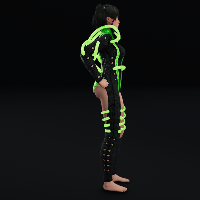 Futuristic Body Suit with Metal Tubes - Lime