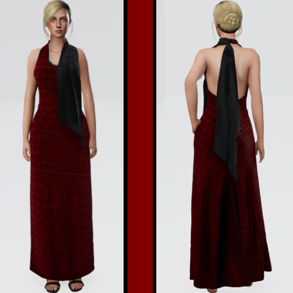 A beautiful Metallic Stripped Evening Gown with attached Scarf. The sparkling texture has a beaded effect. Get Demo Here: https://store.sansar.com/listings/9b35855f-5149-4ca5-8af7-9143e5dda0f9/sparkling-stripped-evening-gown---demo Trying on the available Demo is the best way to assure your satisfaction with quality and fit. The lighting isn't the best in the lookbook and the shoulders seem to fit funny in the lookbook as well, so I recommend wearing the demo in world to see how it truly looks on you. Visit my inworld store experience to find discounted items that or not available on the marketplace and also look for miniature butterflies to find free mystery gifts! https://atlas.sansar.com/experiences/lonaleelancaster/lona Made in Marvelous Designer and can be adjusted to fit most avatars. Please try a demo to assure fit and satisfaction. To learn more about transforming and adjusting Marvelous Designer clothing visit this link: https://help.sansar.com/hc/en-us/articles/115005693363-Fitting-Marvelous-Designer-clothing-to-your-avatar#some-tips