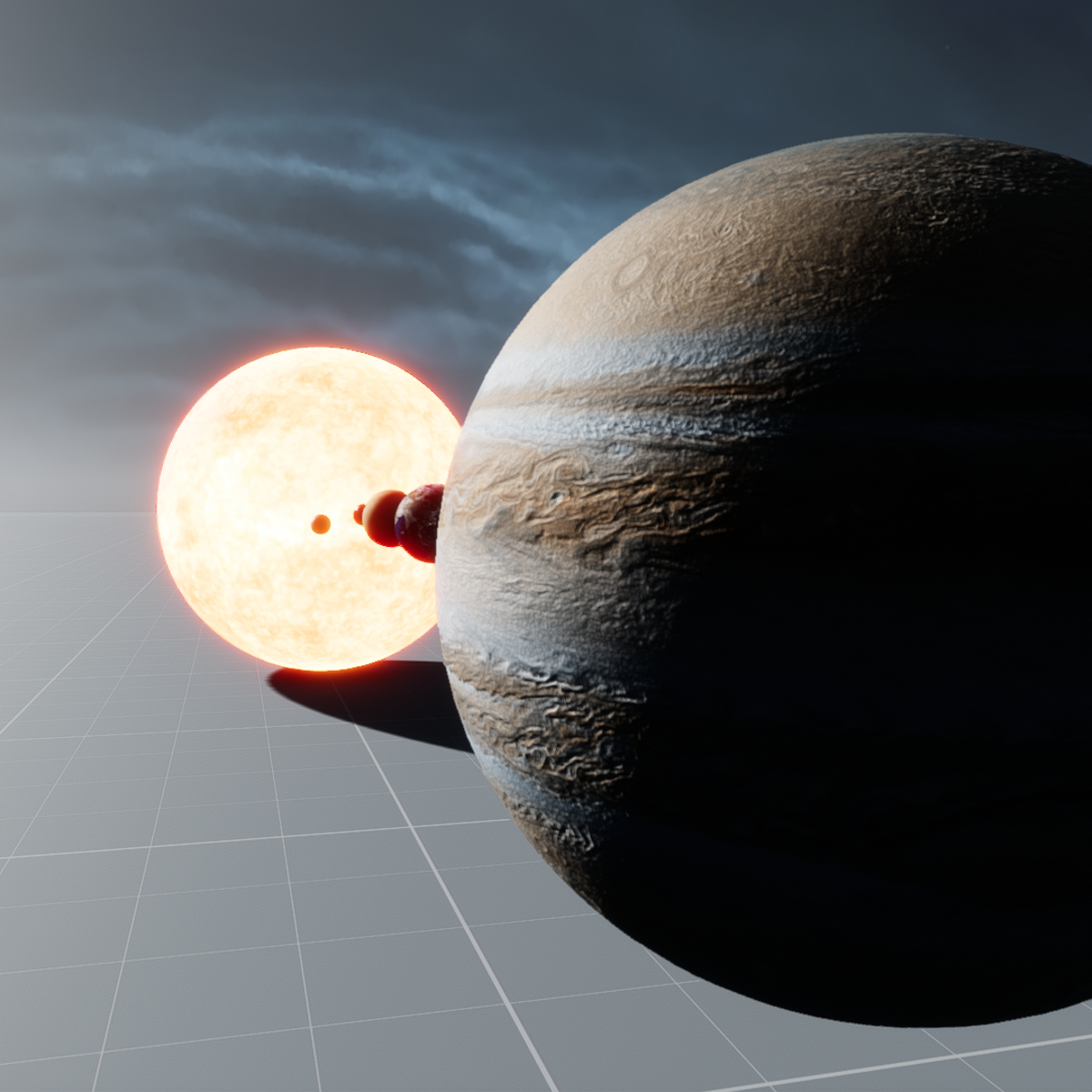 Animated Solar System model. Sun, Planets and moon with collision and PBR materials. 181.2 MB, 37.4K tris, 2048x1024 and 4096x2048 texture sizes. Each planet is a single object with an animation of 360 frames. Rotation is animated in UV. This model is a higher detailed version, suitable for landscaping. All the items have the pivot point in the same position for easy setup. Some images adapted from Solar System Scope CC-BY
