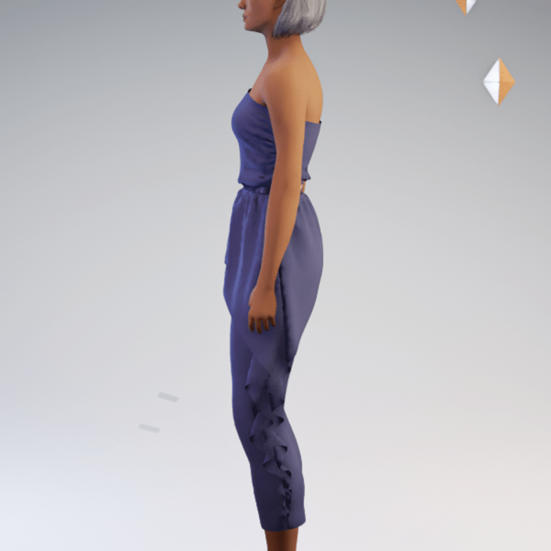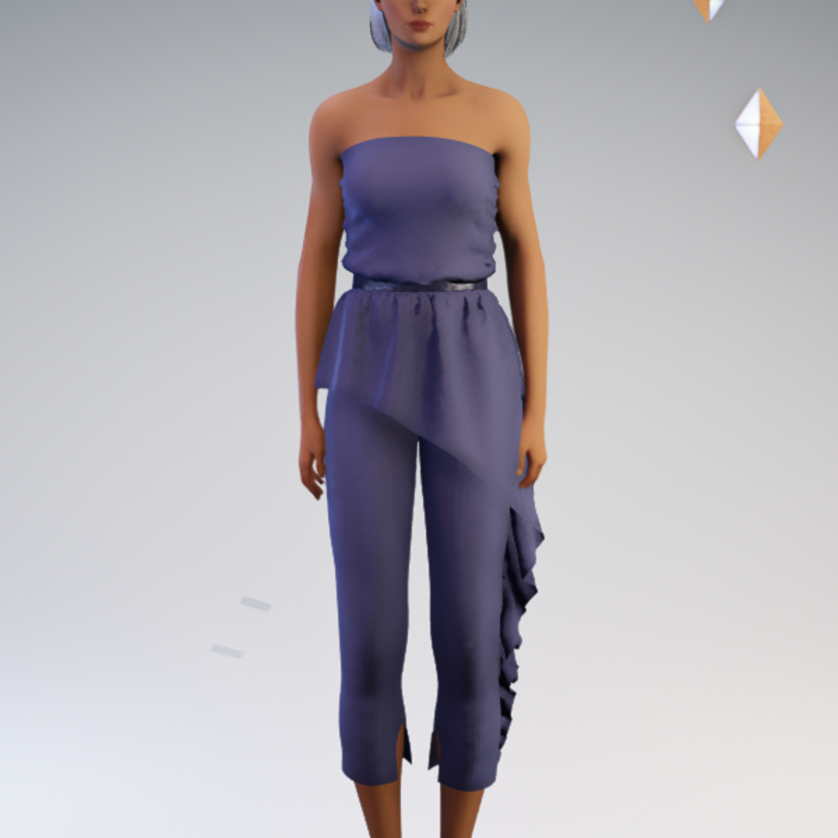 Elegant strapless pant suit with sloping peplum. By Sweet Distractions