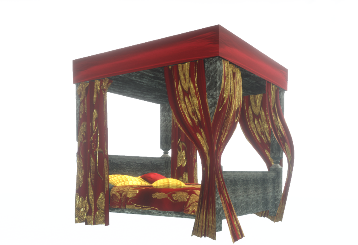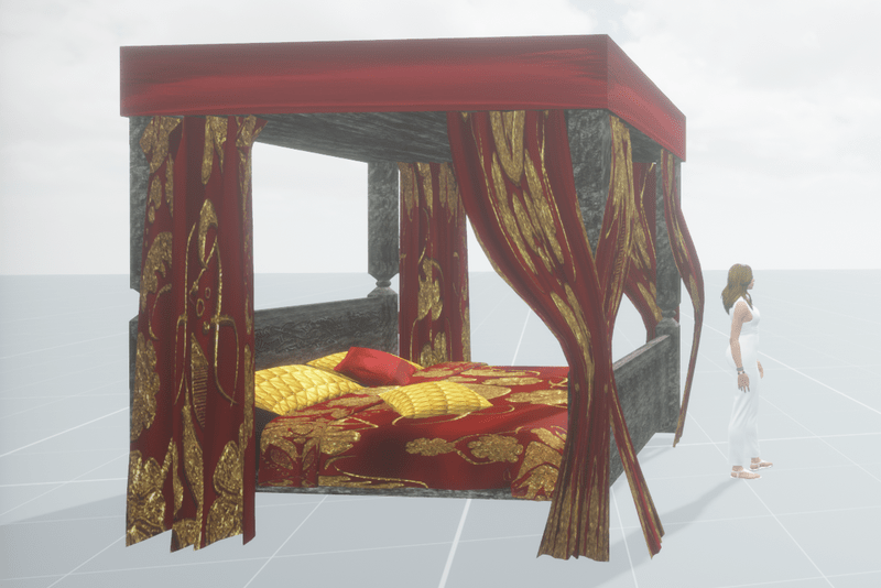 Medieval canopy bed, nice for medieval scene. It includes collision. Other colors coming soon.