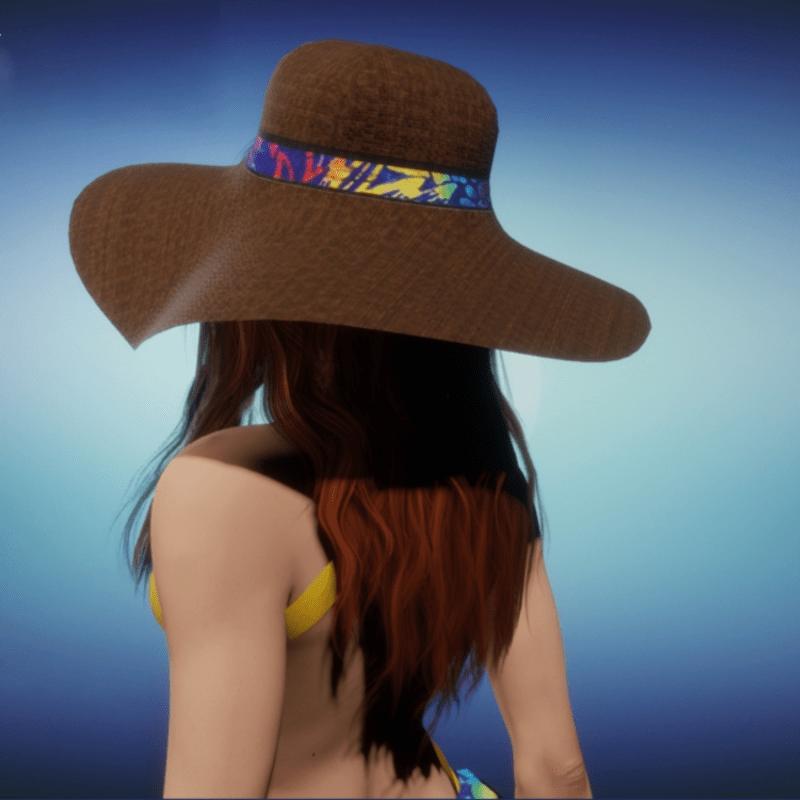 This is an avatar attachment. It attaches to the ear slot. The fabric band on the hat matches my Sarong - Tropical Print bathing suit cover-up. It was made to work with Cora's 'Hair - Andrea - Long Wavy Hairstyle - Women's'.