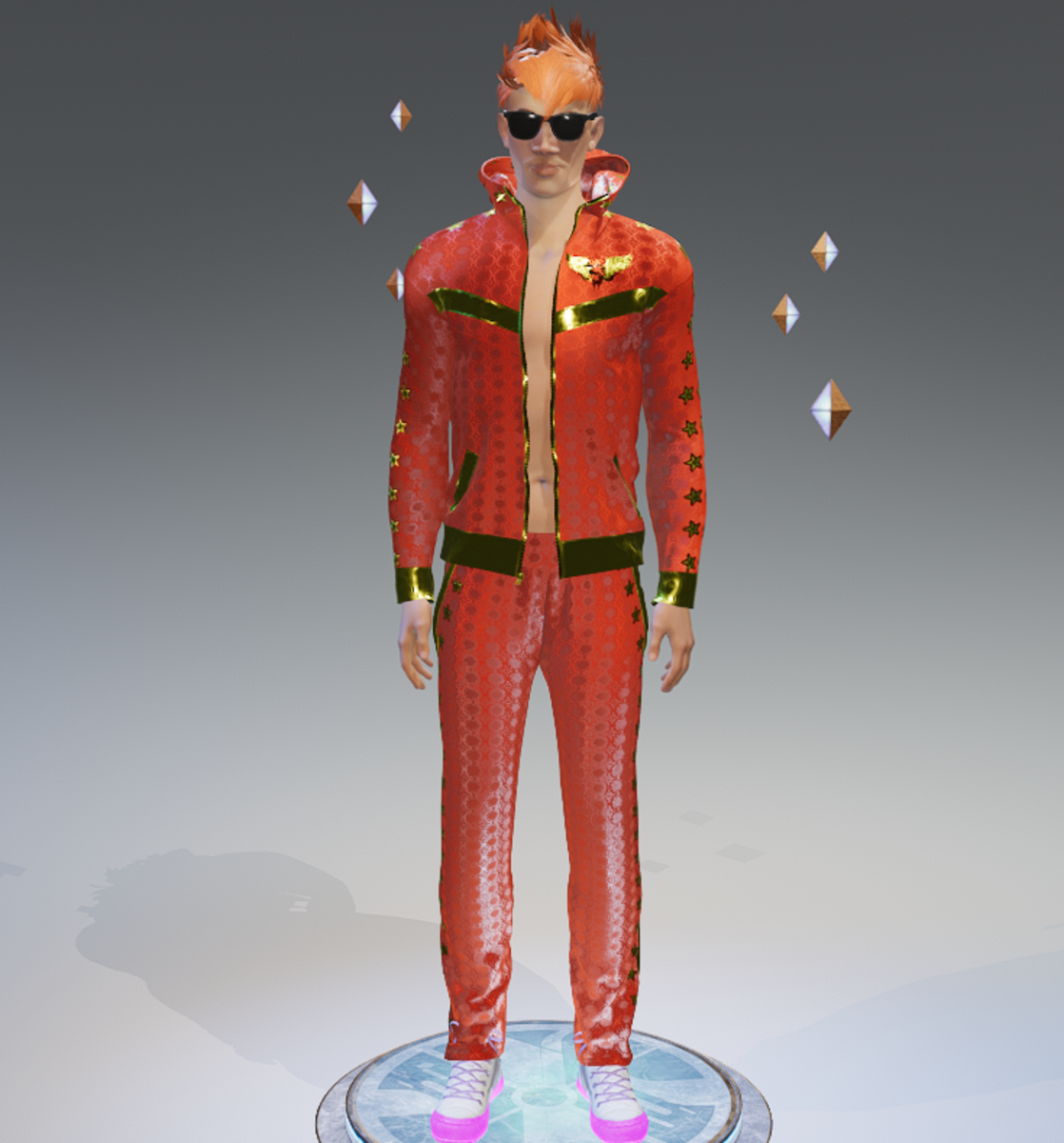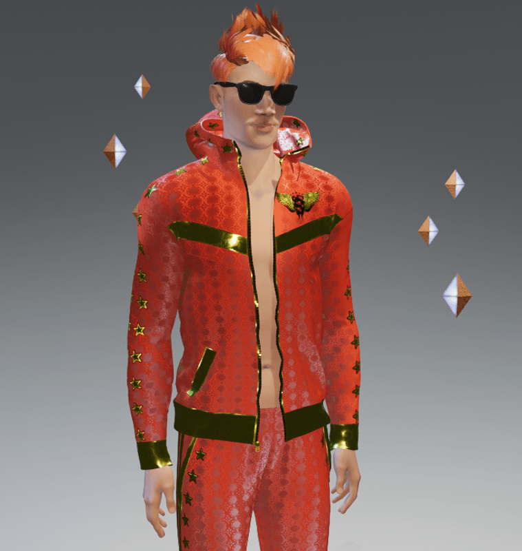 ***ORIGINAL DESIGN*** Be the star of the party with this Stars Orange-Gold VIP Fashion Sports Suit! Zips down all the way. Enjoy and have fun! :)