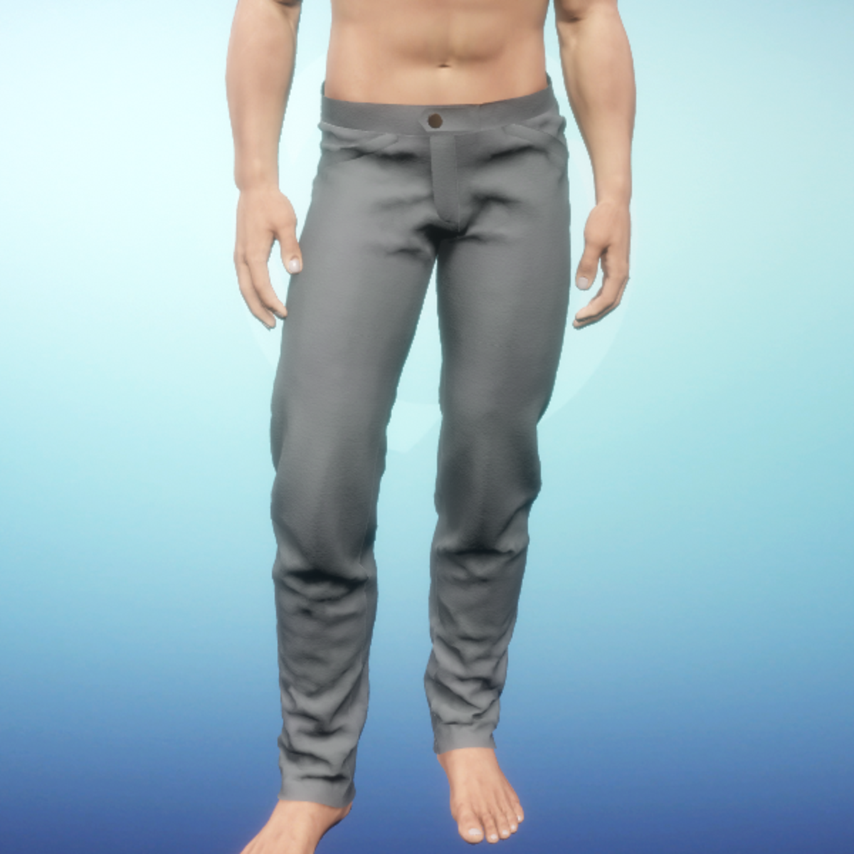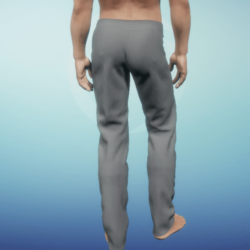 Men's casual slacks, featuring faux-pocket detailing and some wearing on the legs. By Sweet Distractions