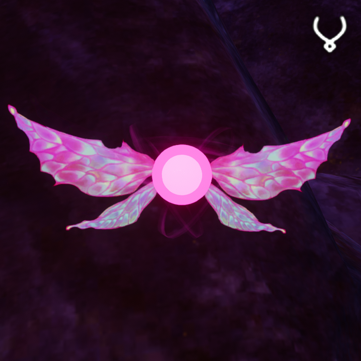 Animated glowing pink pixie pet; Worn in the Necklace Slot Animated wings and magic particles, see example gif: https://gyazo.com/ad92c34d5e876c8603e200e061294e77 Wearable with other slot variants and FULLY TRANSFORMABLE! Textures hand drawn by NovaVoidSpirit