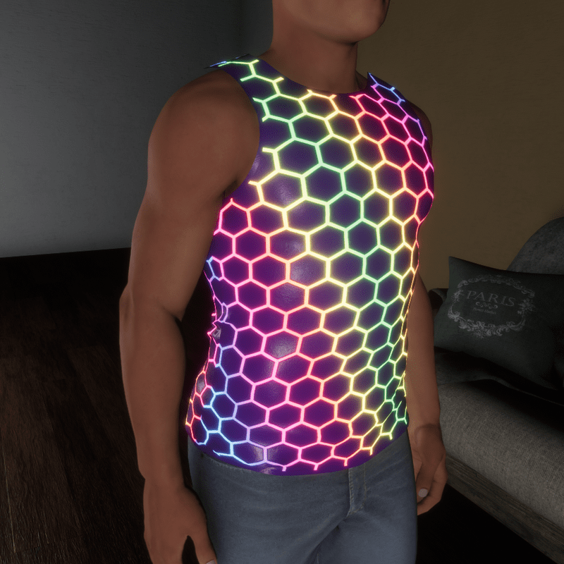 High quality sleeveless shirt made of colored leather with glowing parts. Please don´t forget the ratings ;) You can simulate the clothes before wearing it to adjust it optimally.