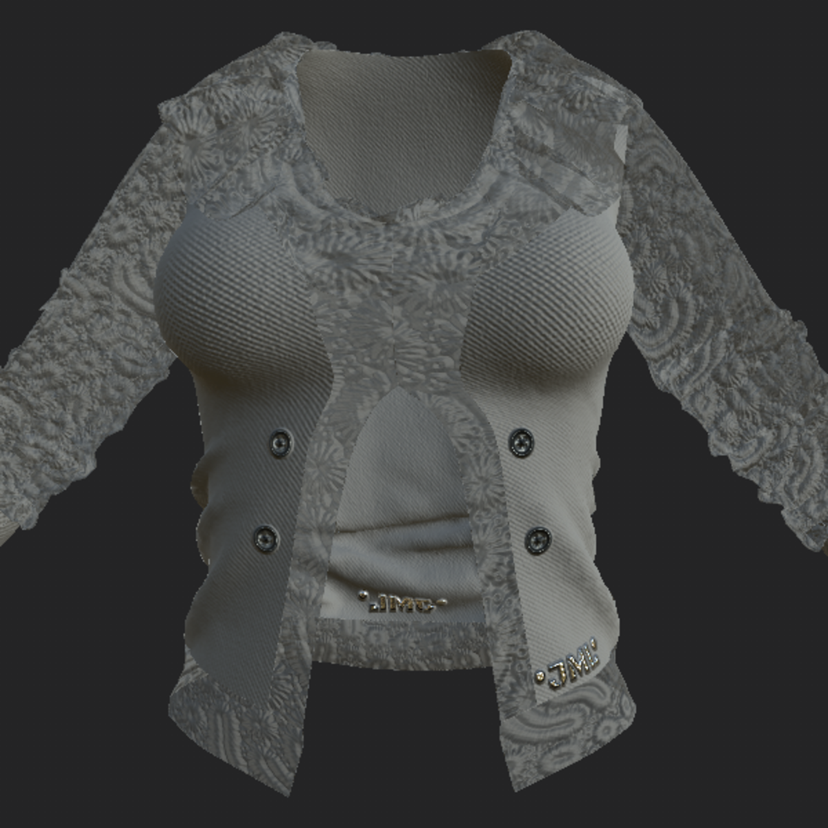 This garment is created in Marvelous designer so you can adjust it to look as you like. For any problem, or suggestion contact me. @ jamal-7001 Thank you *. All the clothes of my store are for the 2.0 avatar of Sansar, and have been tested and used in the custom avatar Alina of the Cora store too