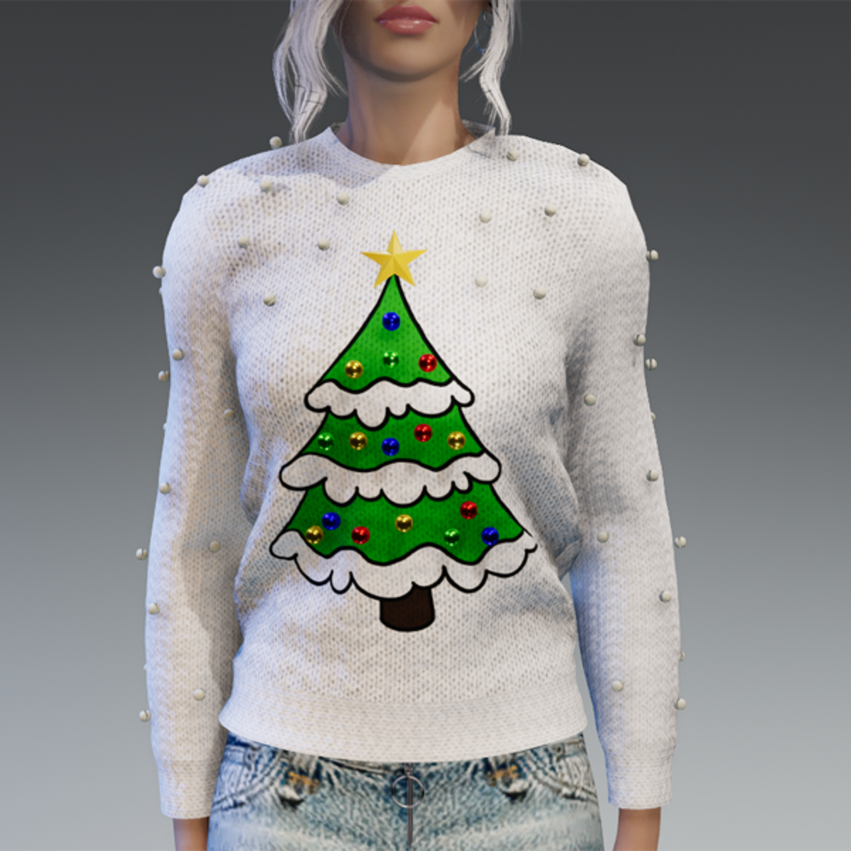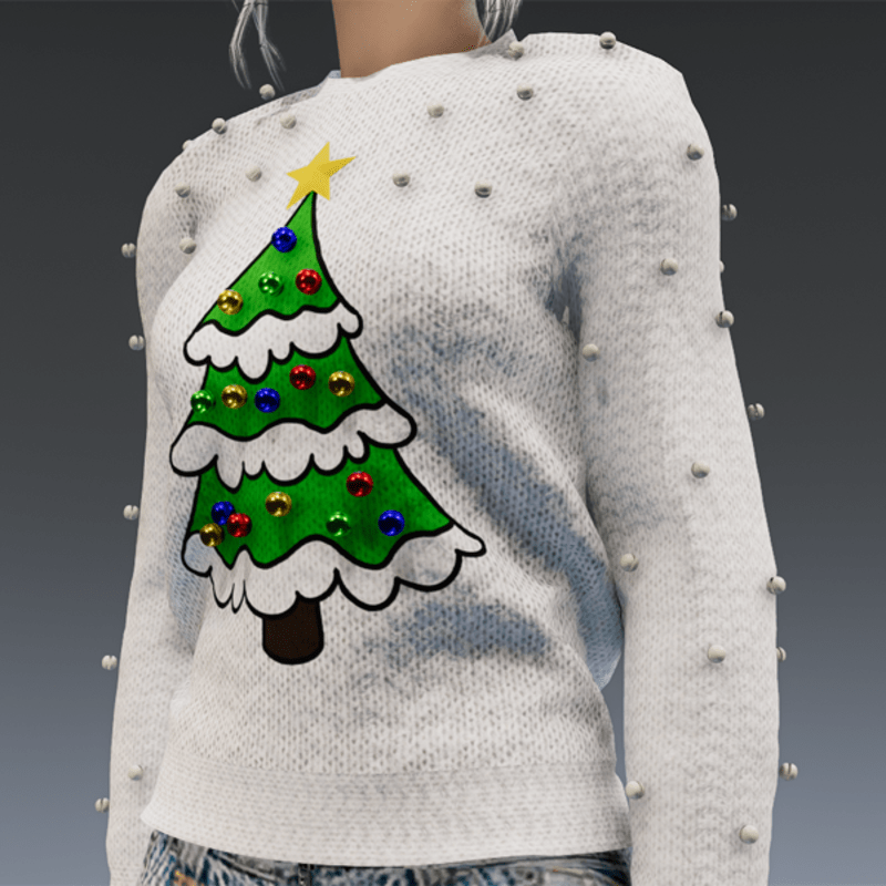 This christmas sweater comes with my christmas tree drawing which has a 3d star on the top as well as lots of colorful christmas tree balls. There are also lots of white pearls for some snowing-vibes. Enjoy! <3