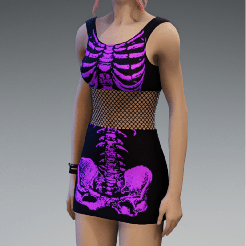 Ready for some Halloween-vibes? This one comes with a fishnet-detail in the middle of the dress and a cute violet skeleton-fabric. Of course you can always wear those dresses! (and don't forget to click the "adjust item"-button) Enjoy!
