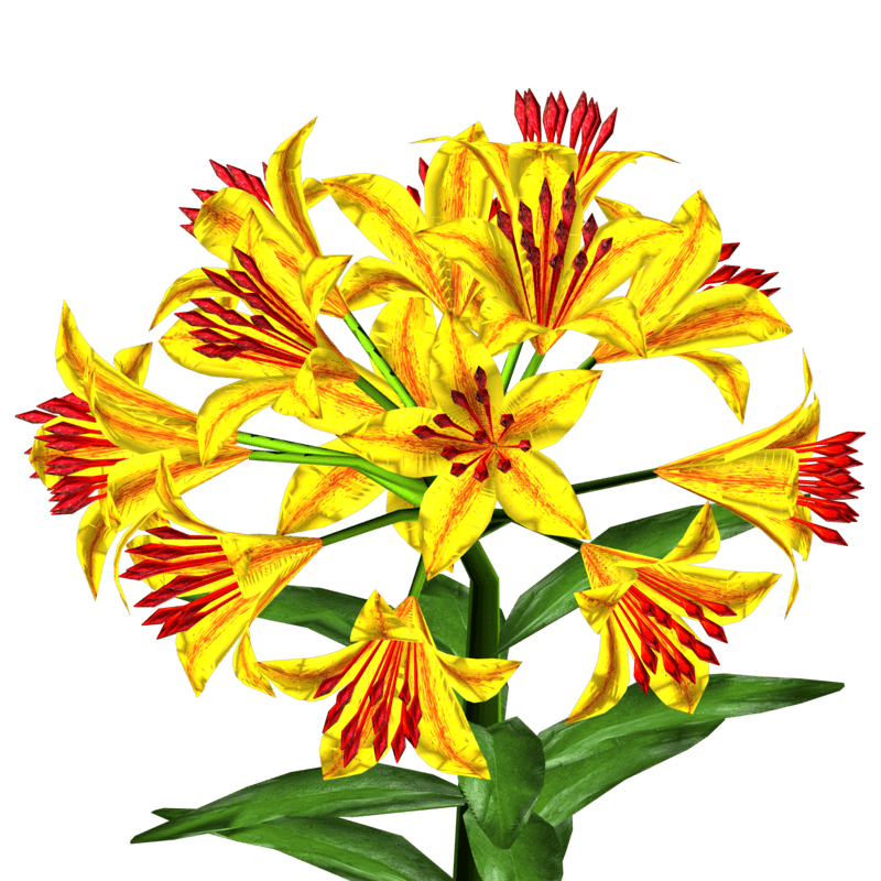 1 Trumpet Lily Plant with about 14 blooming lily flowers and several leaves for your lovely gardens. Polygon count: 15480. There is no collision on this mesh so you can walk through it. I have many colors. To see this flower in Atlas, please visit "LovedWarrior's Ground Plants: https://atlas.sansar.com/experiences/lovedwarrior/lovedwarrior-s-ground-plants" Please note that all my flowers are 100% detailed mesh. Each petal, pollen, stalk and leaf is made by hand and placed by hand. All the textures are also made by me. If you have any flower or plant requests, show me a picture of the flower and I will let you know if I can make it for you. Enjoy!