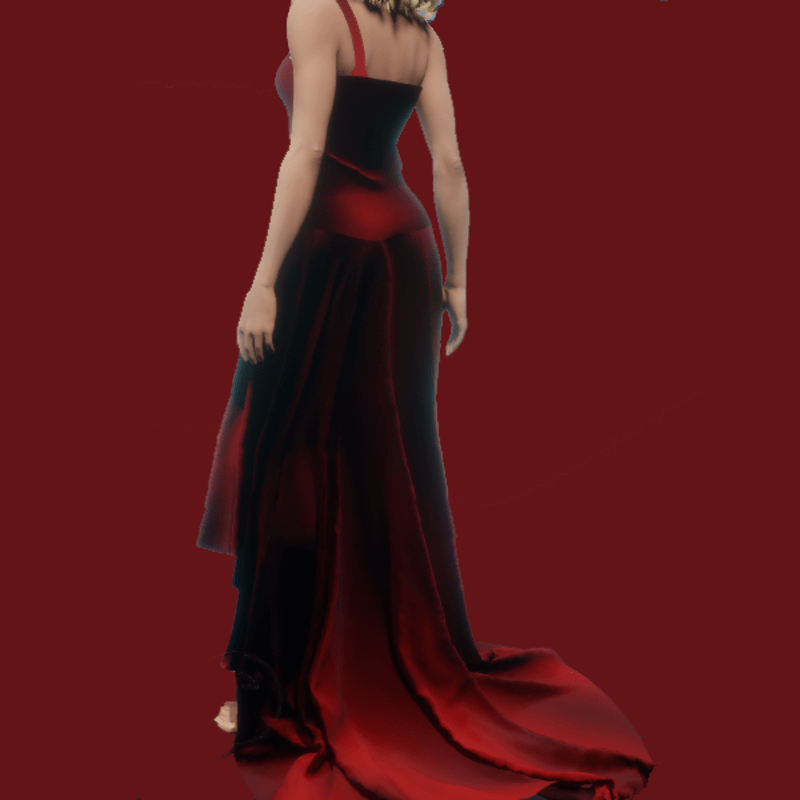 Beth in Deep Red - A beautiful and special evening gown falling shorter in the front, trailing at the back