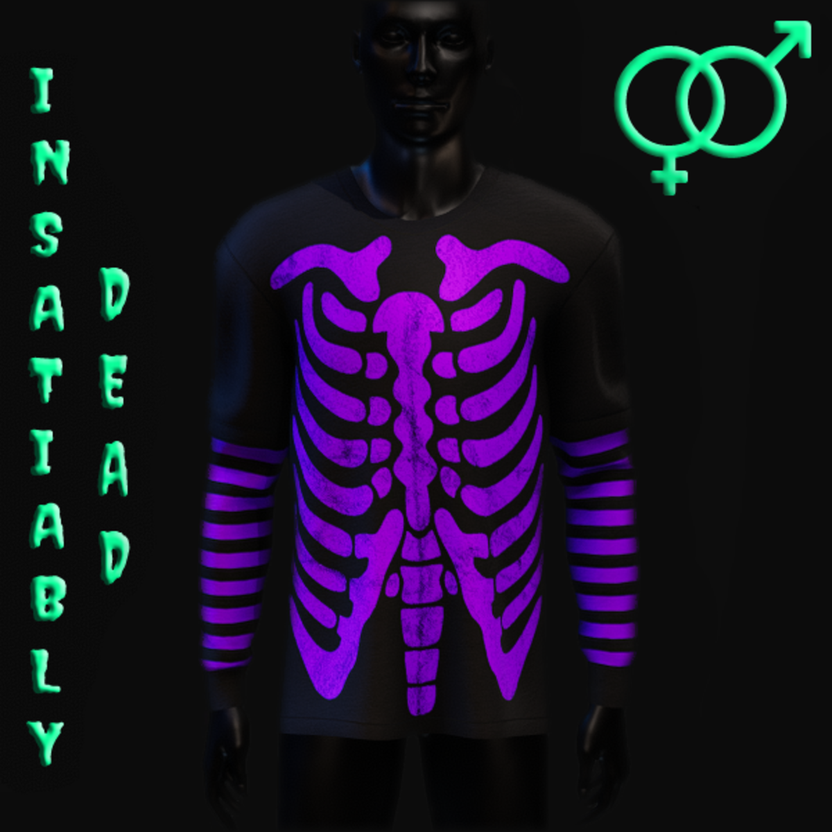 UNISEX SKELE T-SHIRT & ATTACHED LONG SLEEVED SHIRT [PURPLE]. CREATED IN MARVELOUS DESIGNER WITH AVATAR 2.0. ADJUSTMENT MAY BE REQUIRED! FITTING INSTRUCTIONS CAN BE FOUND BY GOING TO THE LINK BELOW. https://help.sansar.com/hc/en-us/articles/115005693363-Fitting-Marvelous-Designer-clothing-to-your-avatar PLEASE RATE AFTER BUYING! IF ANY ISSUES OCCUR PLEASE CONTACT TEAGAN BROKKEN FOR ASSISTANCE. THANK YOU! <3 <3 GET INSATIABLY DEAD <3