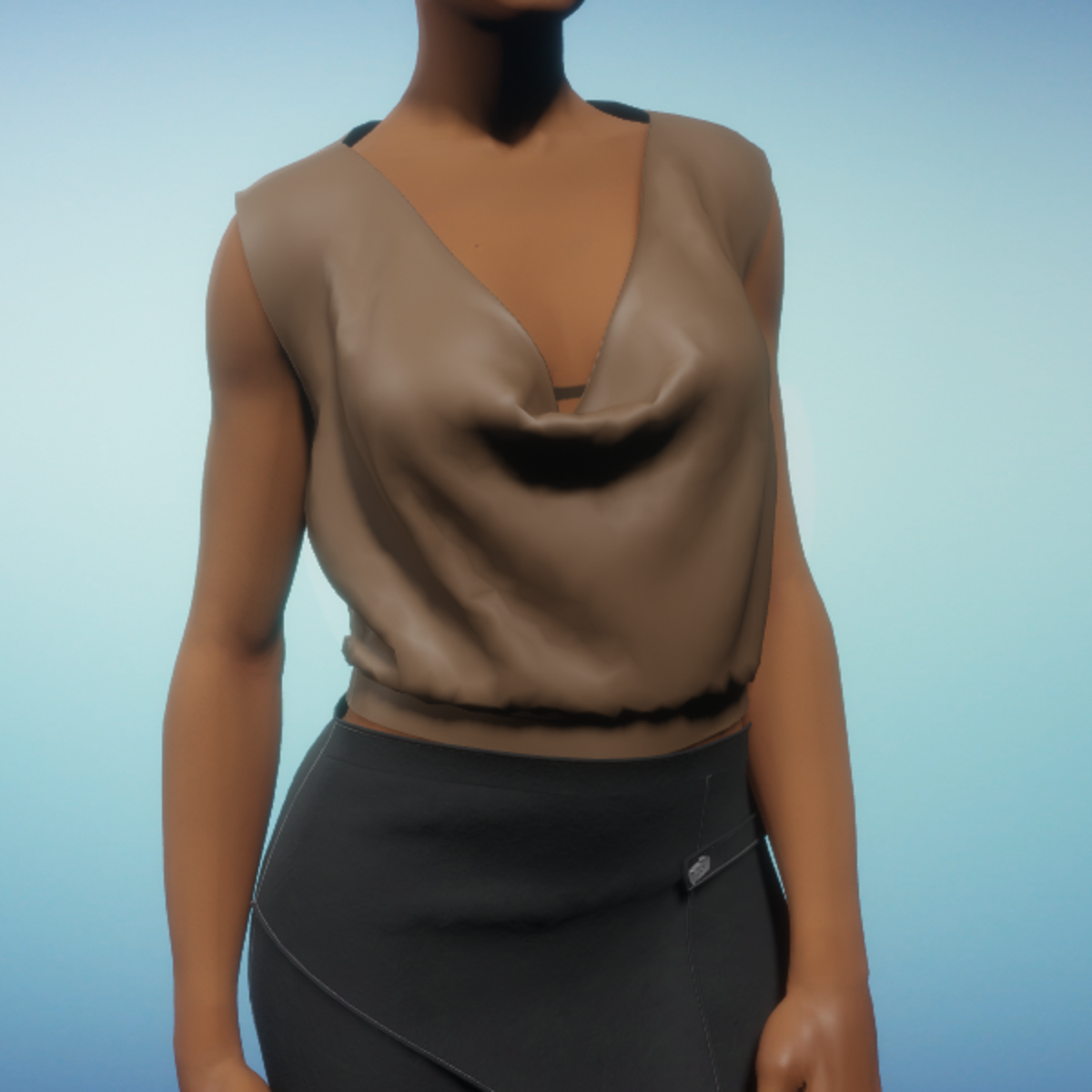 Sleeveless Cowl Blouse - Brown Silk