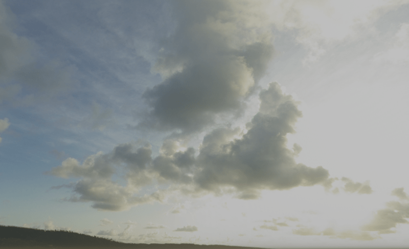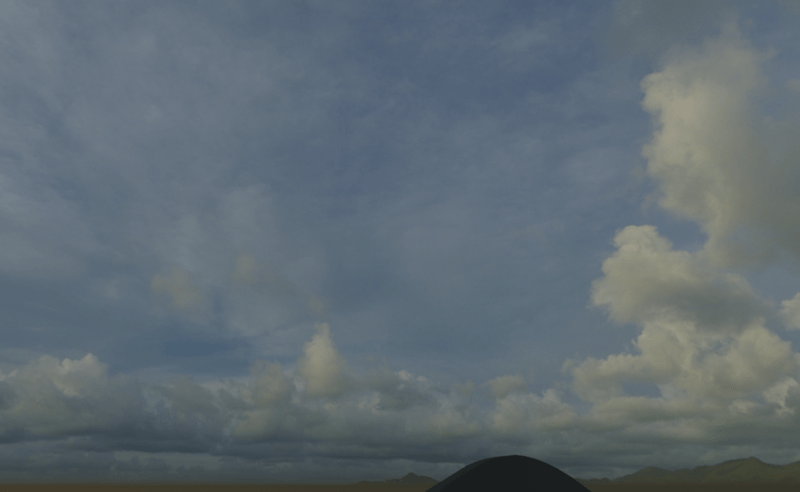 Calm, moody afternoon sky over the Virgin Island of St. Maarten. Brassy-yellow clouds billow in a sky of cornflower blue. A white sun burns through, and some green islands peer over the horizon. Classically beautiful.
