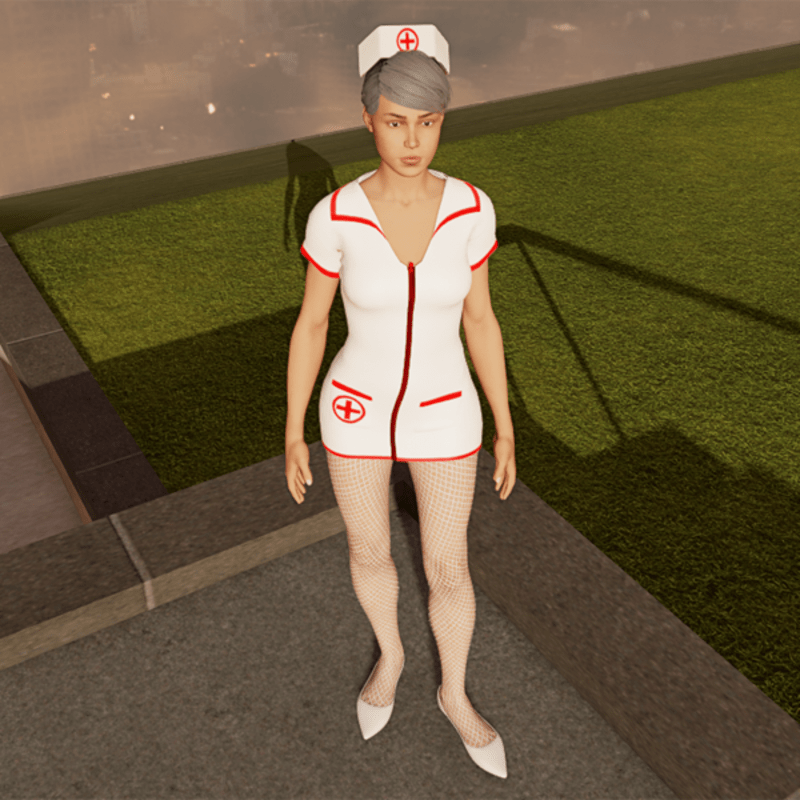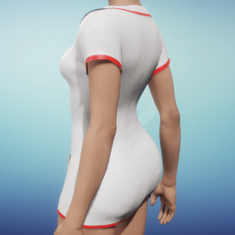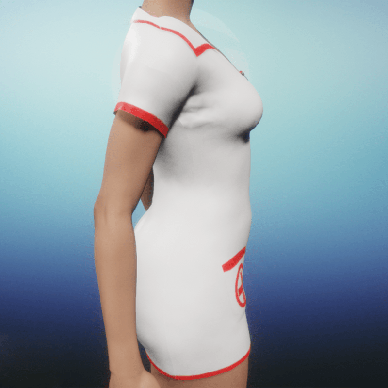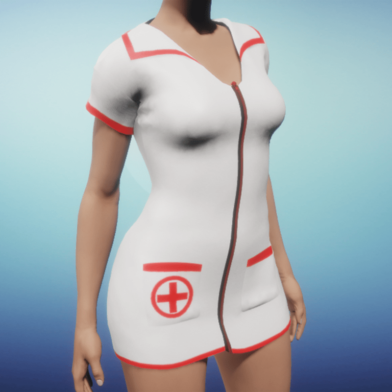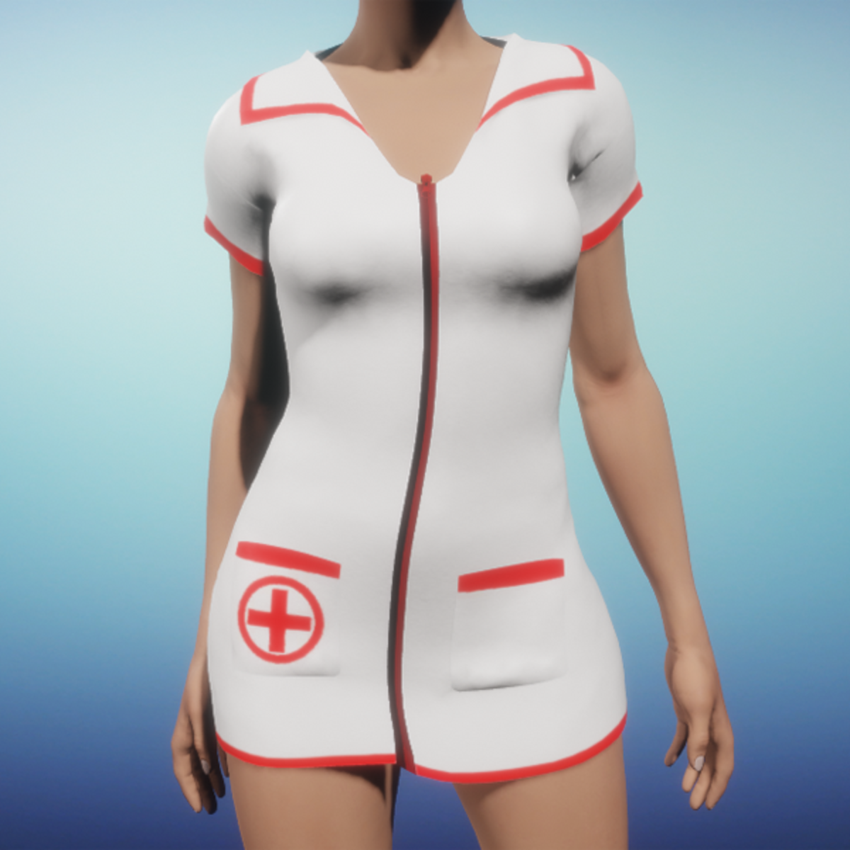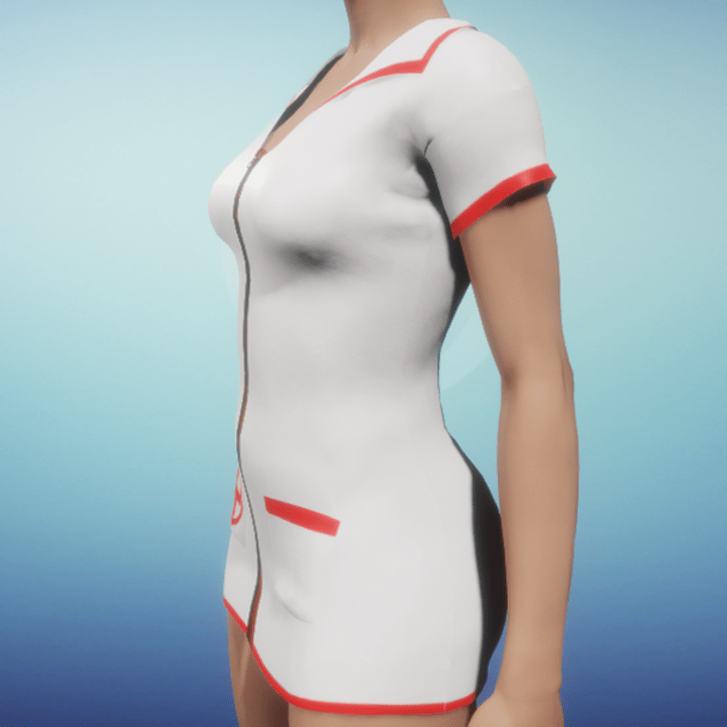 This classic nurses dress has been modeled to use cloth simulation. It has two front pockets, red accents and a working zipper running down the middle. When you "Adjust Clothing" you can change the height of the zipper. (Nurses hat, white fishnet stocking and white shoes are sold in separate listings in our store.)