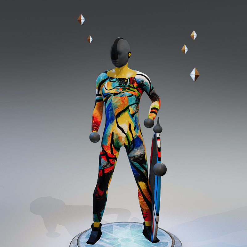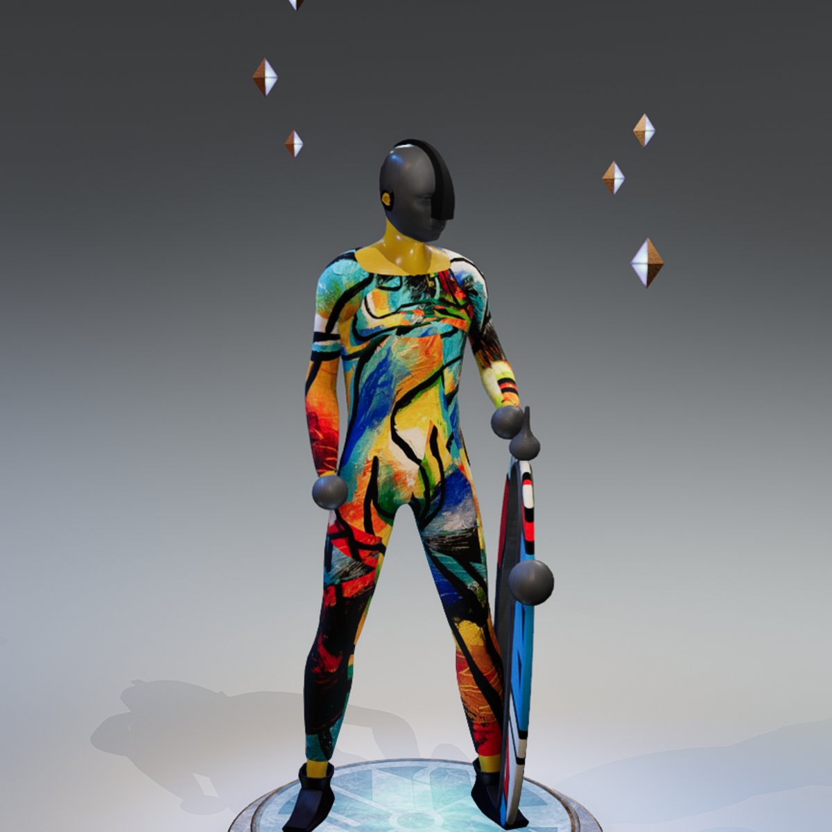 Standing looking around the disk on the side, designed for "Arty's Disk"