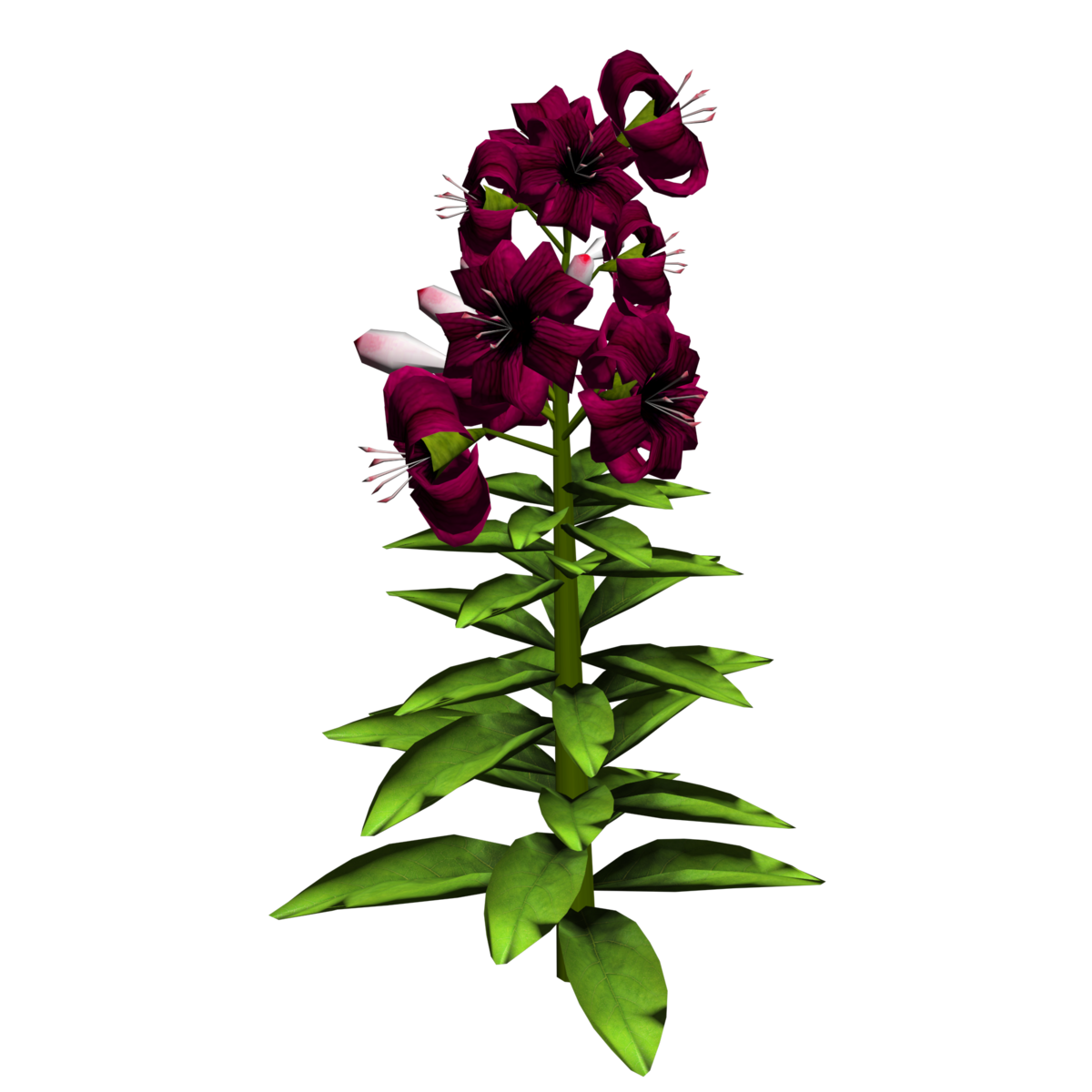 1 Tiger Lily Plant with about 10 blooming lily flowers and 6 buds and several leaves for your lovely gardens. Polygon count: 6546. There is no collision on this mesh so you can walk through it. I have many colors. To see this flower in Atlas, please visit "LovedWarrior's Ground Plants: https://atlas.sansar.com/experiences/lovedwarrior/lovedwarrior-s-ground-plants" Please note that all my flowers are 100% detailed mesh meaning no flat planes with flower pictures pasted on them. Each petal, pollen, stalk and leaf is made by hand and placed by hand. I only make grass from planes with grass pics pasted on them. All the textures are also made by me. If you have any flower or plant requests, show me a picture of the flower and I will let you know if I can make it for you. Enjoy!