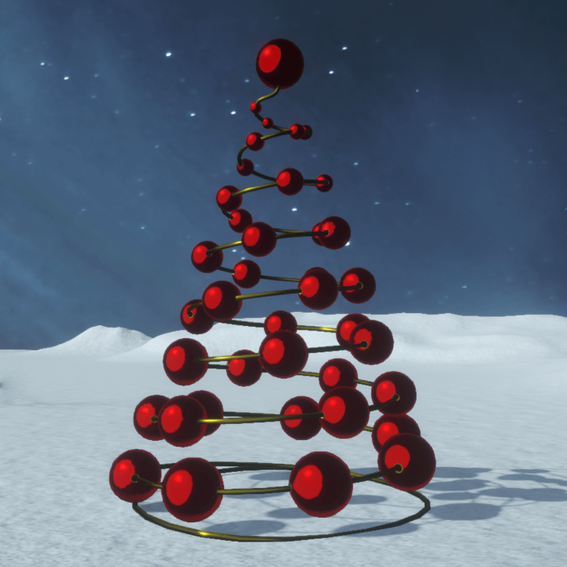 A unique christmas tree, with golden wire and red shiny beads. Suitable for interior and exterior holiday decorations. With collision. You can take a look here: https://atlas.sansar.com/experiences/luise/terra-di-luci