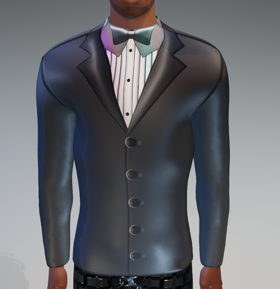 This (non-glow)Gray Simulated Modern Tux is Cool-fun yet presentable ready for the Holidays parties! Gentlemen Enjoy! :)