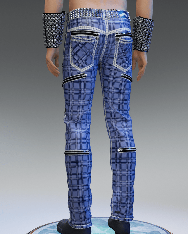 Punk Rock Chaos Blue Plaid Jeans - Male