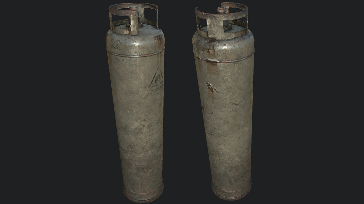 Propane Gas Cylinder 2C PBR Very Detailed Low Poly Propane Gas Cylinder with High-Quality PBR Texturing Fits perfect for any Environment as Decoration, Tool, or Explosive. Sculpting done in Zbrush and Retopologized, High Poly mesh Baked and PBR Painted 4096x4096 TGA Textures Low Poly Triangles 5442 Tris 2764 Verts This Model has Optimized Phys / Collision Shape