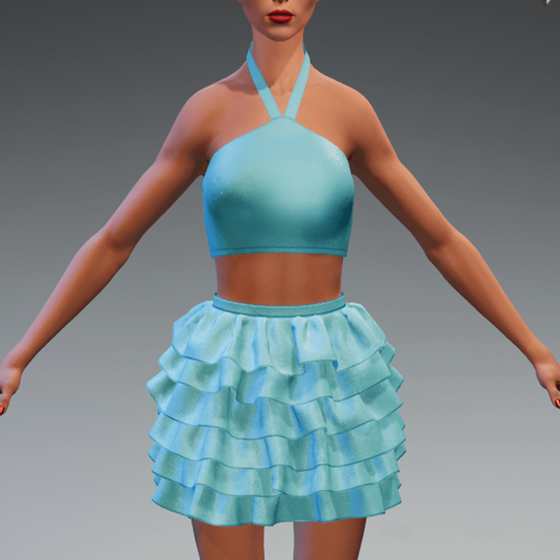 L.F.NANA TOP BLUE, this item is made with Marvelous Designer, you can ajust this item for a perfect fit. Take off your hair for a perfect fit. (skirt sell separately) You can see this garment in my mainstore : https://atlas.sansar.com/experiences/marine-1972/lipstick-fashion-par-marine