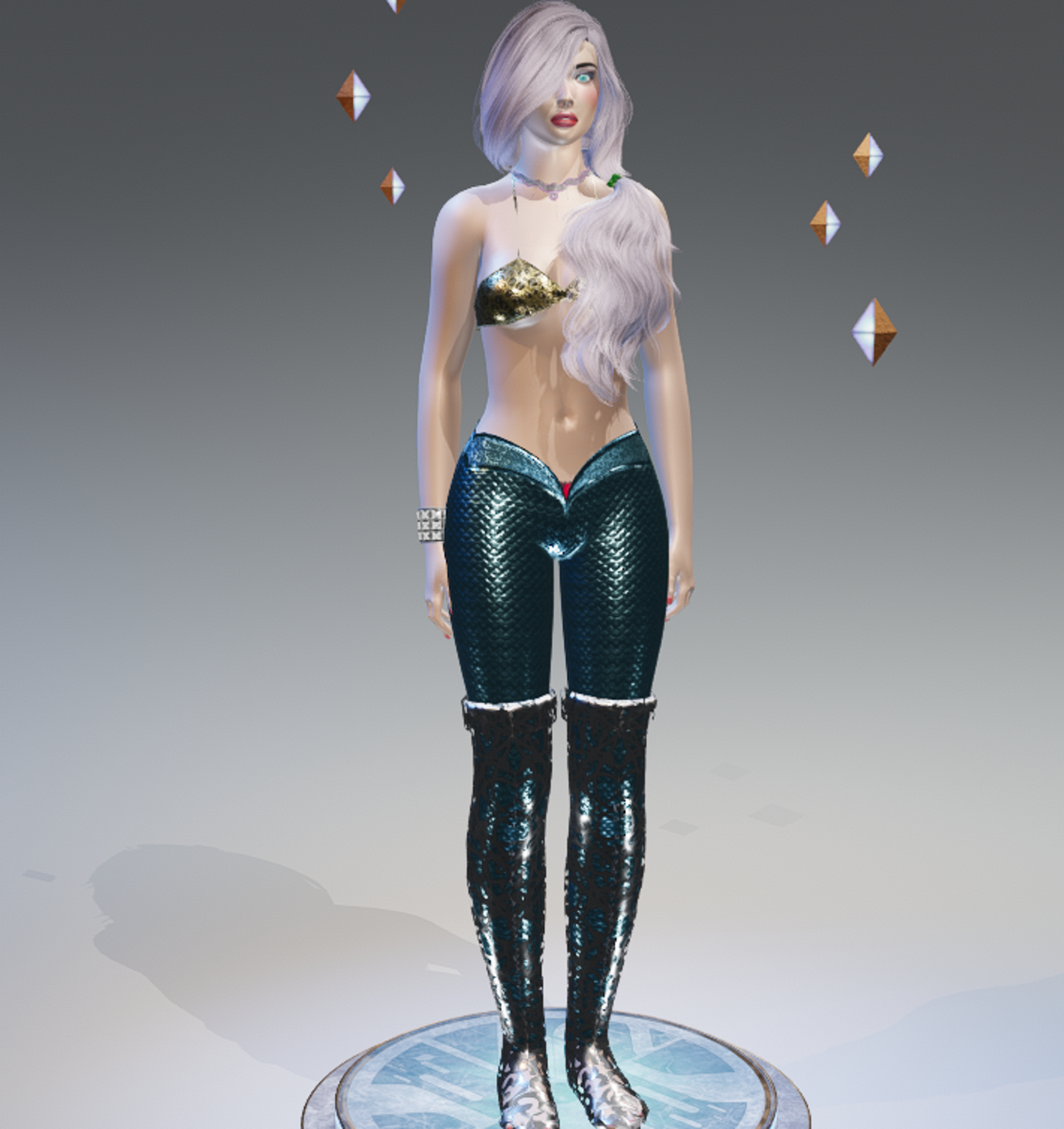 Blue-1Tone Mermaid Leggings - Female