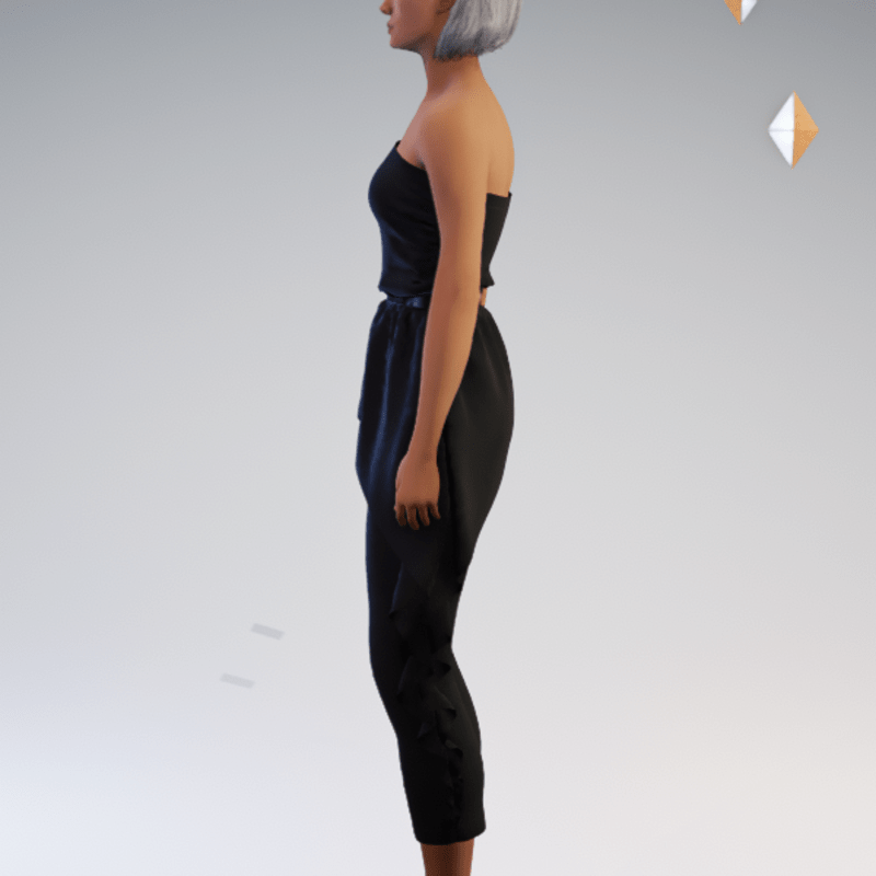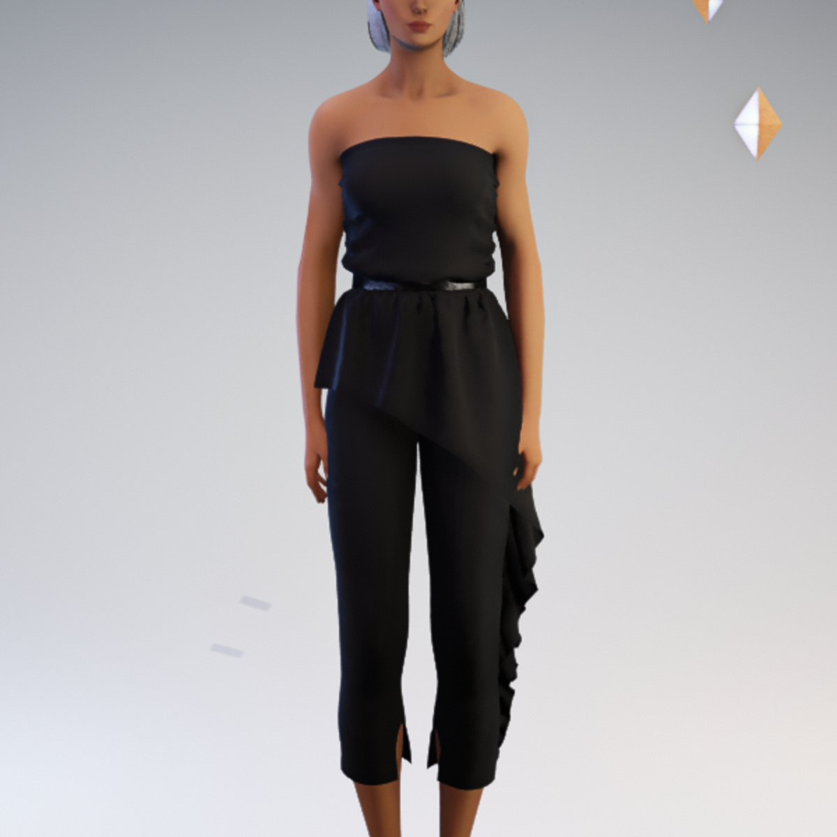Elegant strapless pant suit with sloping peplum. By Sweet Distractions
