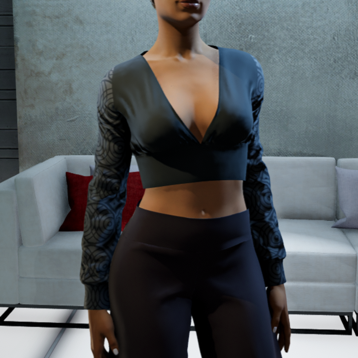 Elegant cropped v-neck blouse with modern detailing on the sleeves. By Sweet Distractions