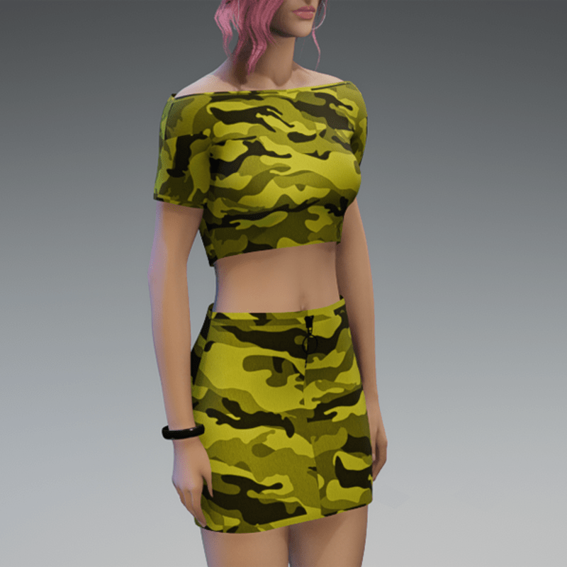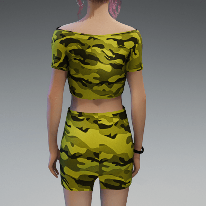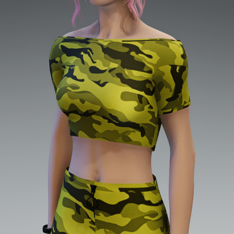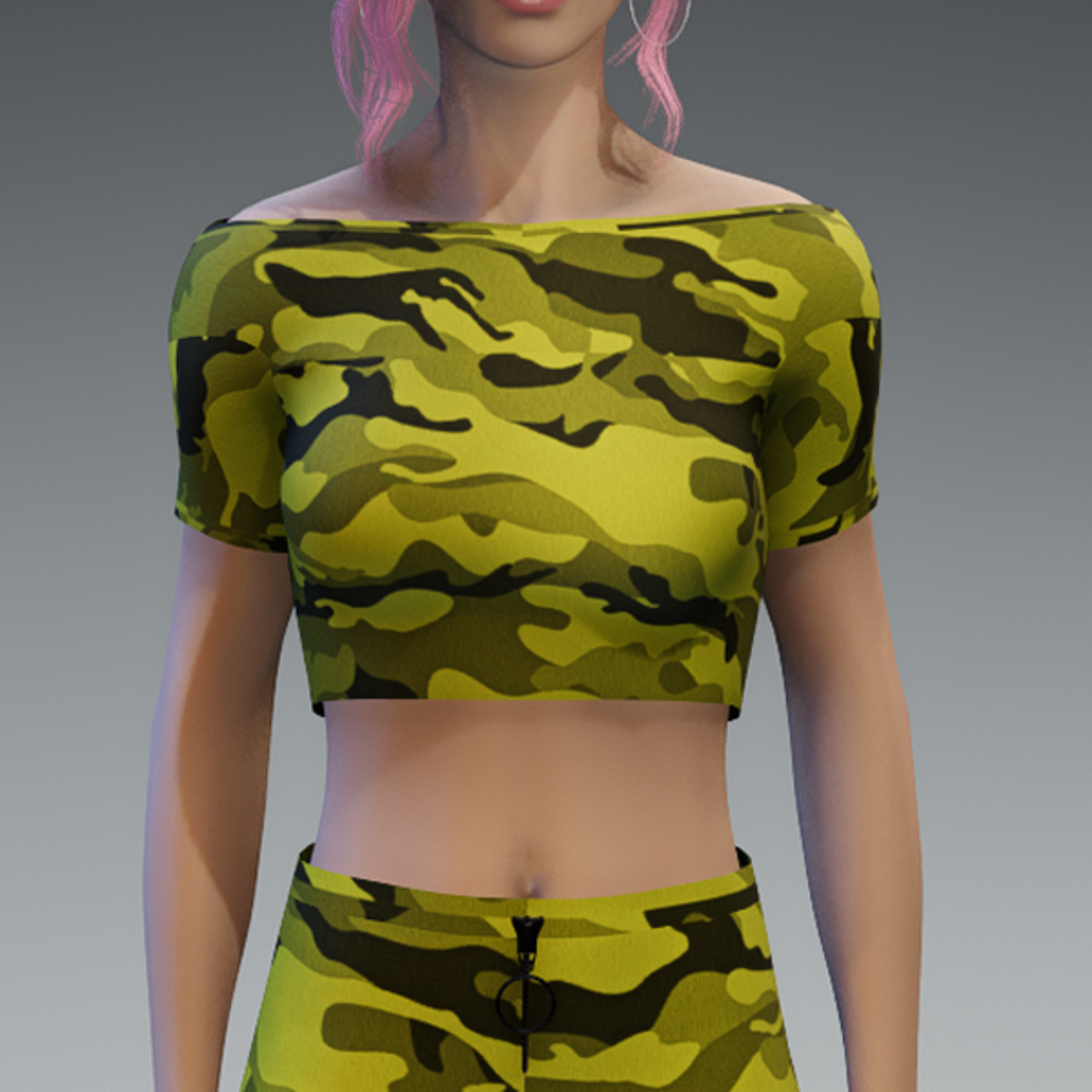 My basic crop top in yellow camouflage. If you're not sure about how this one would look on your avatar, feel free to try my free version before you're going to buy this one. And if you're looking for the skirt i used in the pictures - you can find it in my store, too! Enjoy!