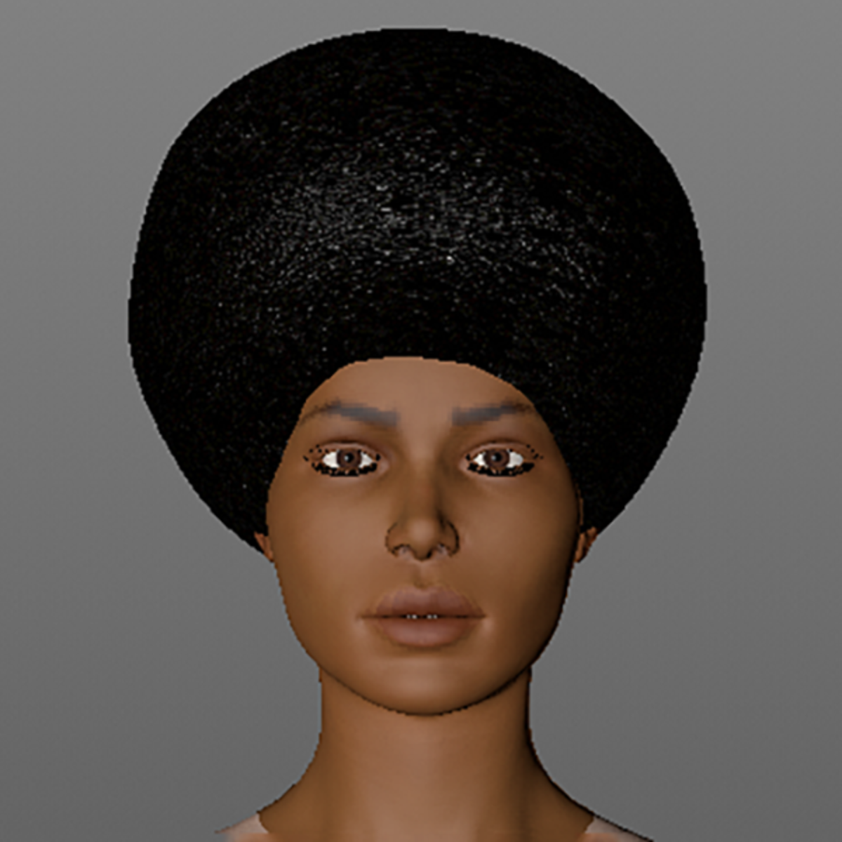 Big Afro-style (or "Natural") Hairdo as they used to wear it in the 1970's. Soft and shiny. Includes a Normal map and a Spec map. Go, Sister! Note: This hair object will show up in your Lookbook Inventory under ACCESSORIES----> GLASSES.