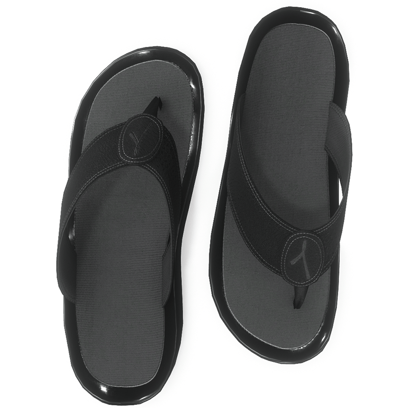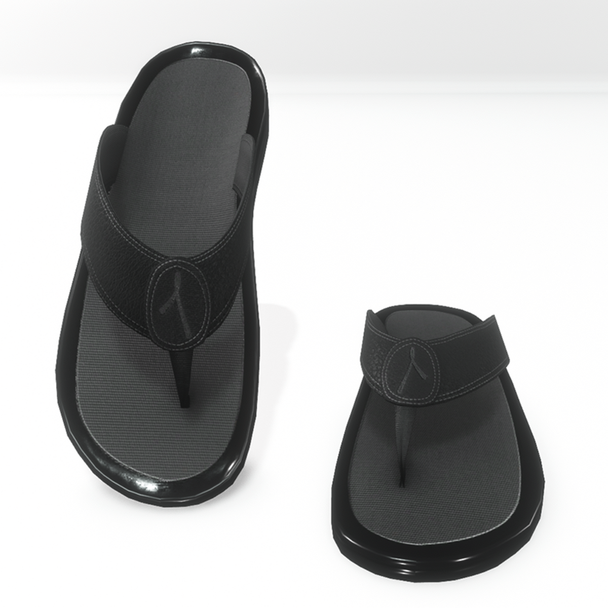 Casual summer sandals made with leather, fabric and rubber in black colour. Get the free demo item before purchasing here: https://store.sansar.com/listings/1da24e43-e485-492c-aaea-8e06b0af195f/thong-sandals-for-male-av2---demo
