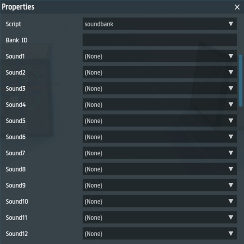 *Not a standalone product Soundbank utility. Used by other scripts as a reflective service to retrieve SoundResource assets. public interface ISoundBank{ string GetId(); int GetCount(); SoundResource GetSound(int ix); // by index number SoundResource GetSoundByName(string name); SoundResource GetSoundByNameX(string name);// by partial match SoundResource SoundRandom(); }