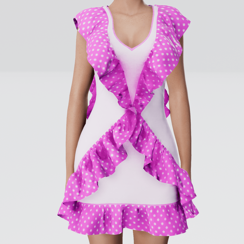 Sleeveless Polka Dot Ruffle Dress. Be ready for fun in this sweet little ruffle dress. Get Demo Here: https://store.sansar.com/listings/b53c0d40-0594-48fa-9363-7d3dcafa4011/sleeveless-ruffle-dress---demo Trying on the available Demo is the best way to assure your satisfaction with quality and fit. The lighting isn't the best in the lookbook and the shoulders seem to fit funny in the lookbook as well, so I recommend wearing the demo in world to see how it truly looks on you. Visit my inworld store experience to find discounted items that or not available on the marketplace. https://atlas.sansar.com/experiences/lonaleelancaster/lona Made in Marvelous Designer and can be adjusted to fit most avatars. Please try a demo to assure fit and satisfaction. To learn more about transforming and adjusting Marvelous Designer clothing visit this link: https://help.sansar.com/hc/en-us/articles/115005693363-Fitting-Marvelous-Designer-clothing-to-your-avatar#some-tips
