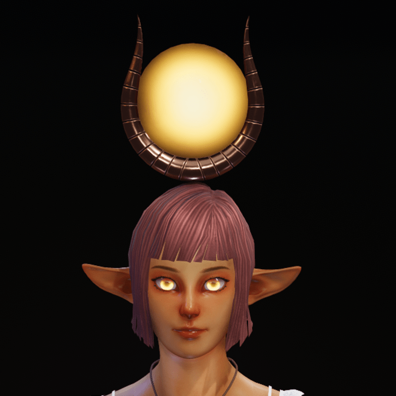 A floating headdress inspired by the ancient Egyptian 'solar disc' imagery often depicted above some Gods heads such as Ra or Isis. Takes up the glasses accessory slot. If you do not immediately see the headdress within the accessories tab make you set the drop down menu to "Show all accessories" see extra reference picture for example. The "solar" energy within the disc has an animation somewhat reminiscent of solar flares and movement within the real sun when viewed up close, see example gif before you buy: https://gyazo.com/139084febbfa44f43d95a570cc667e2a