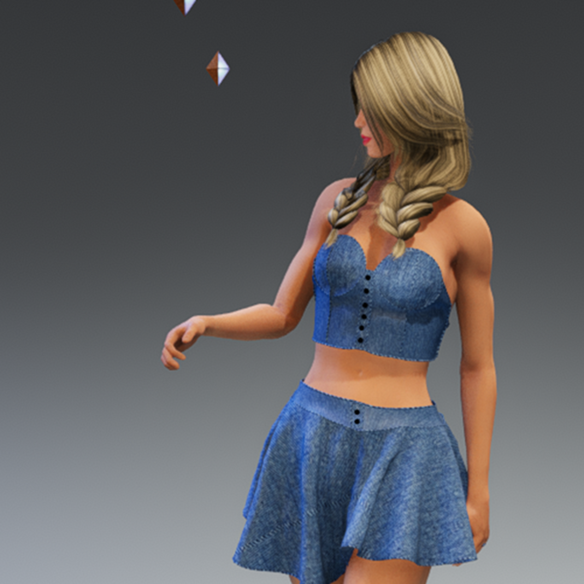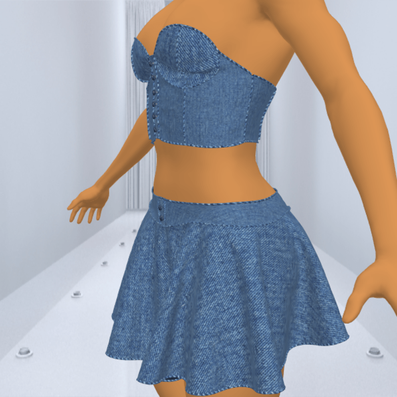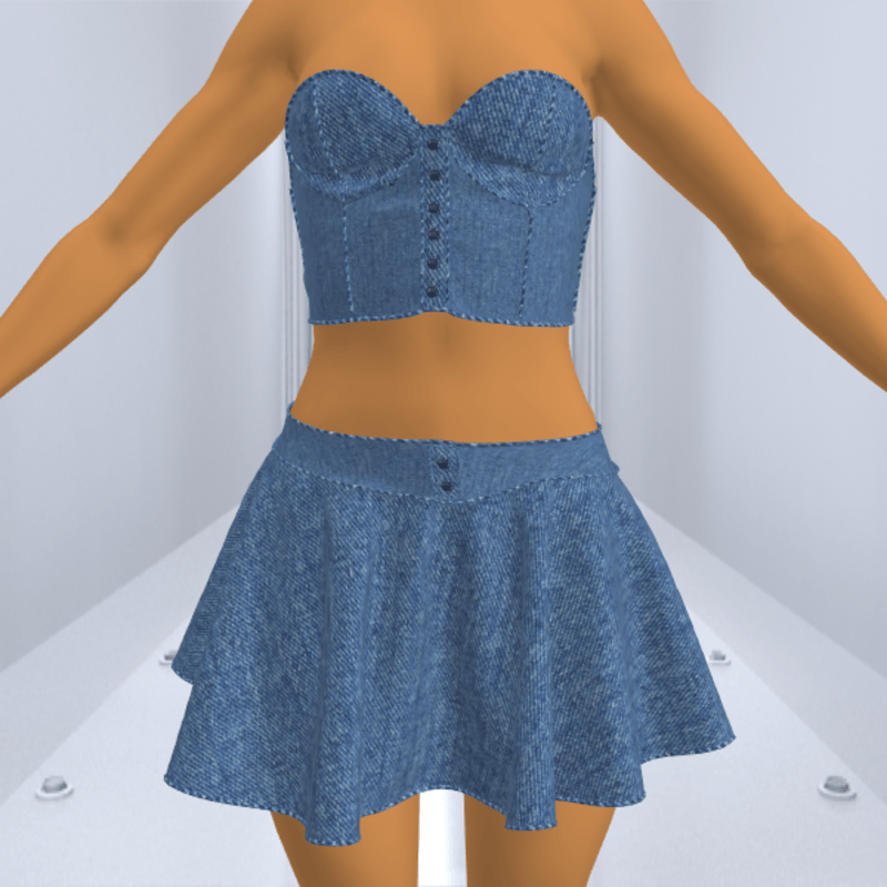 ***No Hair Included*** Denim Outfit This outfit is modeled by Abby, she can be found here: https://store.sansar.com/listings/6620af8f-05bd-4a00-a764-a82b7ff87195/abby-20-av All my clothing are made with Marvelous Designer. I have a whole line of new clothing coming as well as New AV's, come back often to see what is new.
