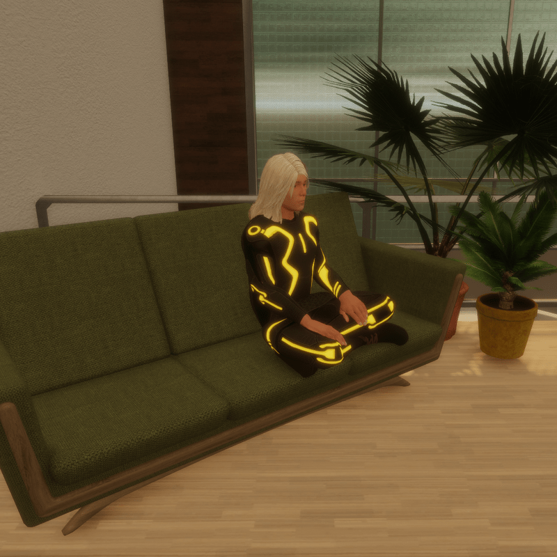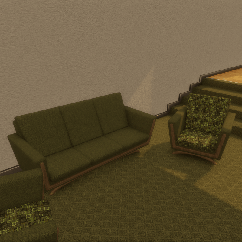 Relax yourself on Avocado Green (or any colour you choose to paint this chair). Following Mid Century styling, this sofa will fit nicely in retro environments as well as on your favourite space pad. Get off your feet. Give yourself and your VR friends a #sitcation. Note: using the Sansar Materials editor you can actually put two different patterns on the textile part of this sofa. For simplicity, the base and the cushions were textured the same in this piece.