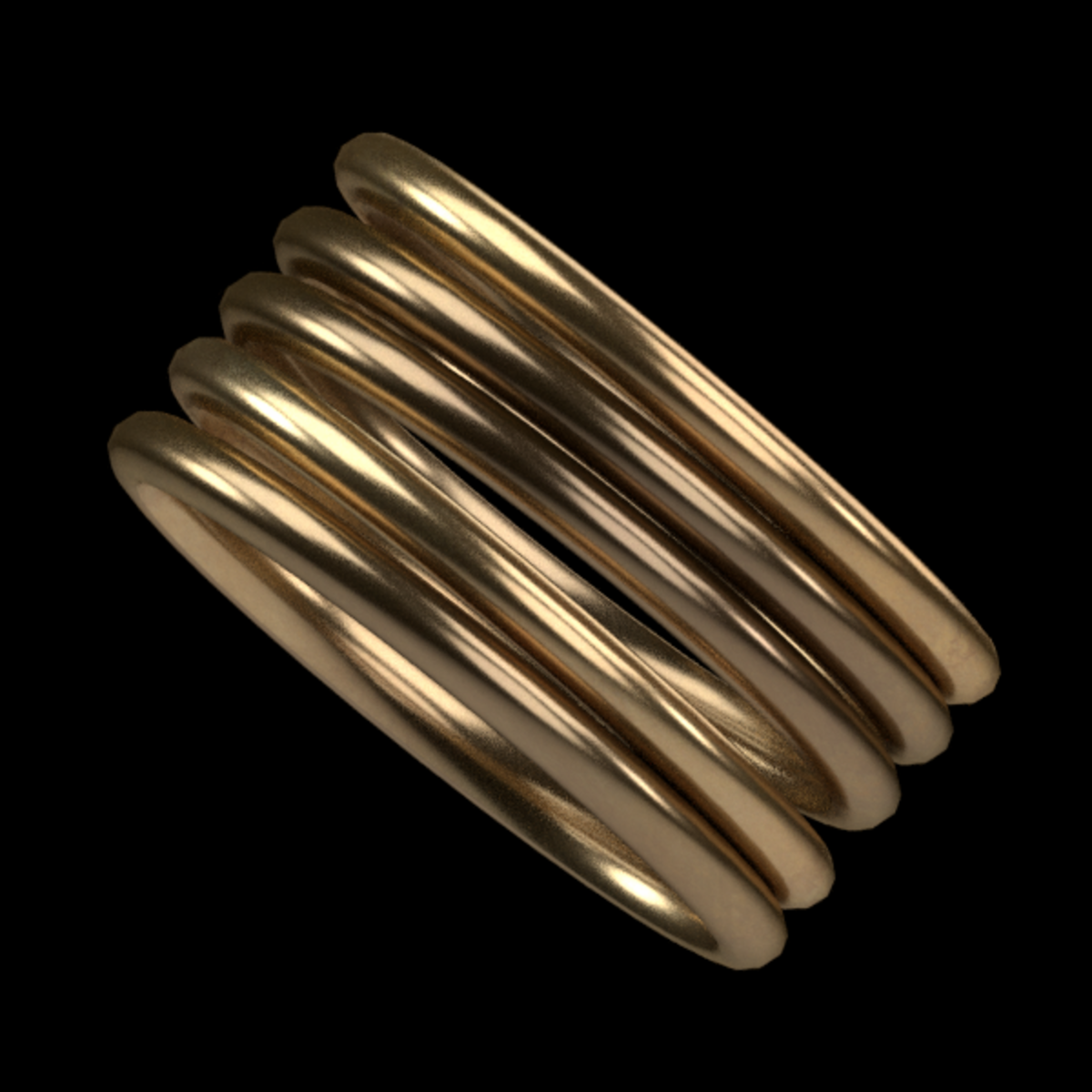 Five thing stacked bangles in gold.