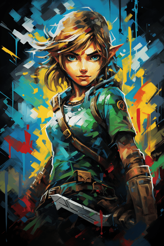 This work of art features a legendary character from video games in a vibrant expressive oil painting. This is one image in a series and the model includes a collider.