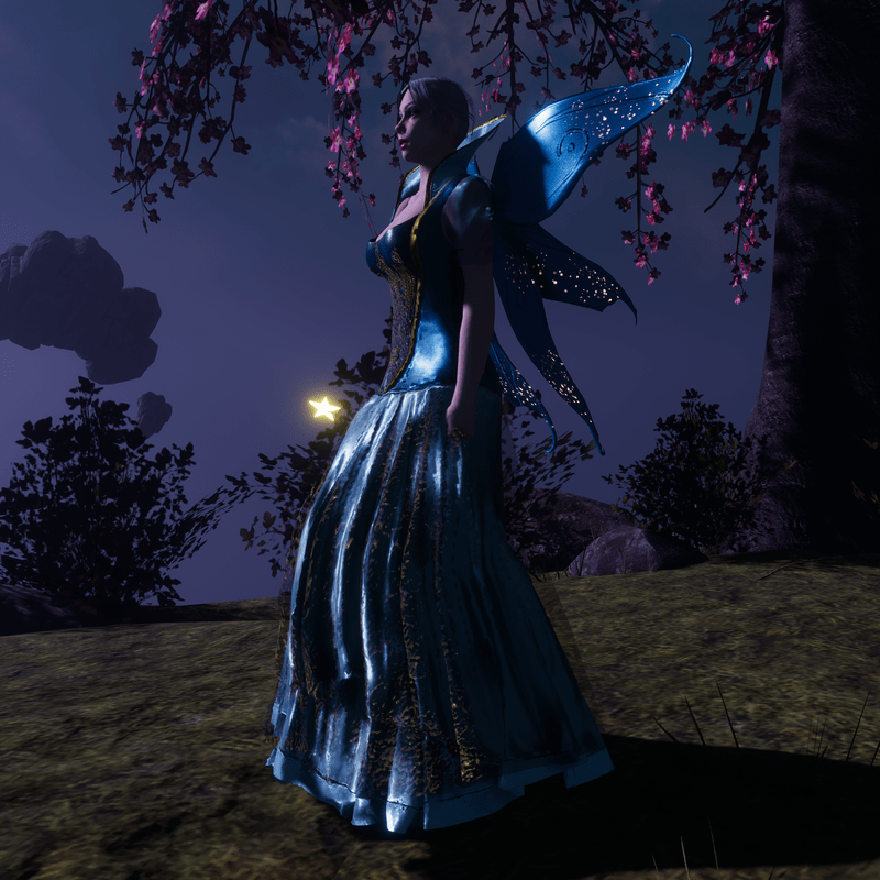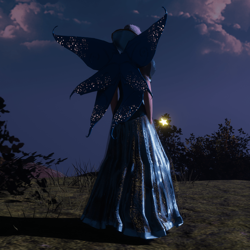 Blue fairy wings for fairy godmother consumer. can be seen in world follow link here https://atlas.sansar.com/experiences/eleganceceleste-1611/elegance-celeste-new-store Hat can be found at this link also. Making your virtual world real