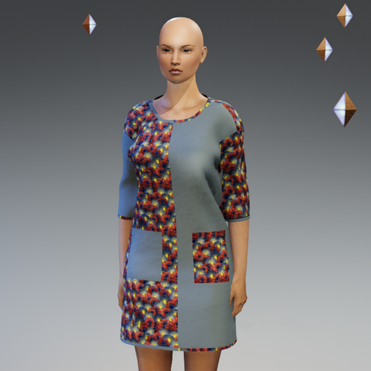 FABRIC Ankara cotton and a plain cotton single knit jersey COMPOSITION 100% organic cotton DESCRIPTION Designed for females. Short gown in organic cotton with a grey plain fabric and flower-patterned Ankara with two front patch pockets MANUFACTURING Designed in Lagos, Nigeria by Hadeeart Find out more at: https://hadeeart.com