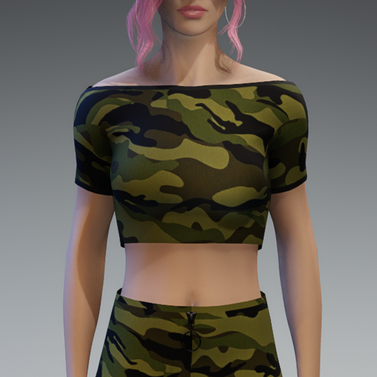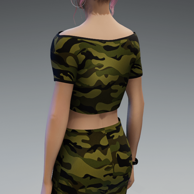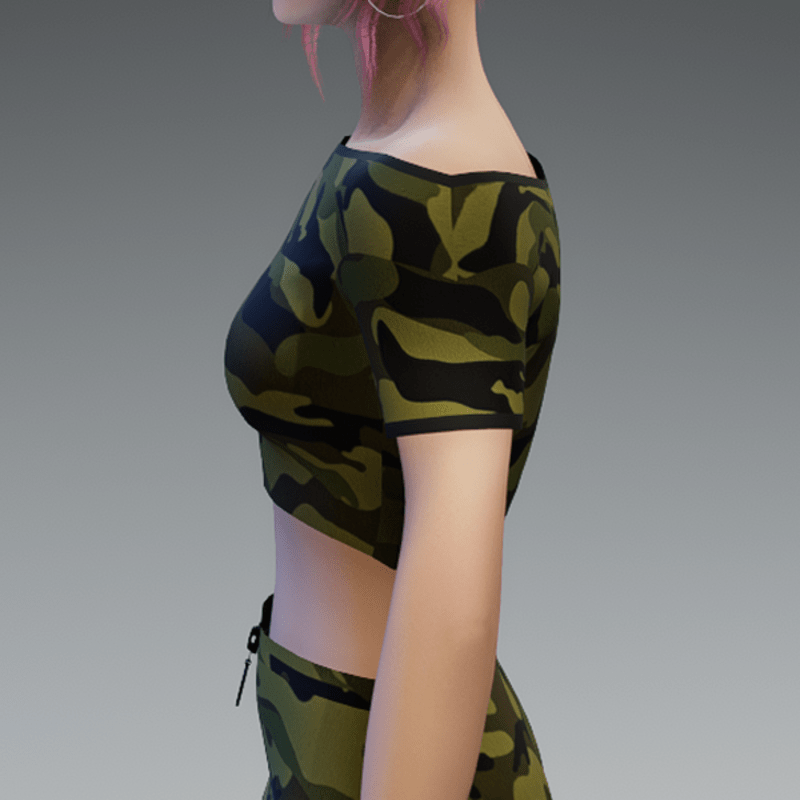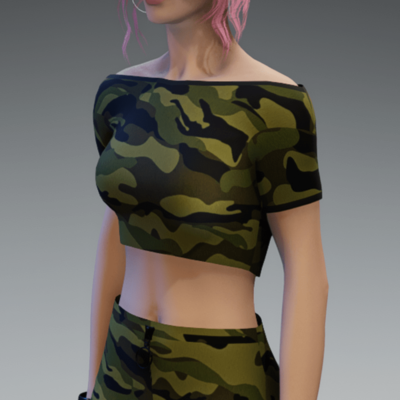 A basic crop top in camouflage. If you're not sure about how this one would look on your avatar, feel free to try my free version before you're going to buy this one. And if you're looking for the skirt i used in the pictures - you can find it in my store, too! Enjoy!