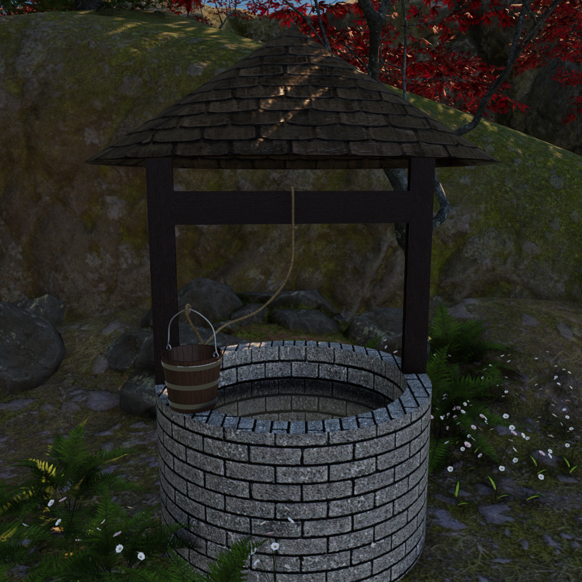 Realistic well and first time I have ever made a well in Blender. Enjoy! High quality textures and design. Has collision. Enjoy.