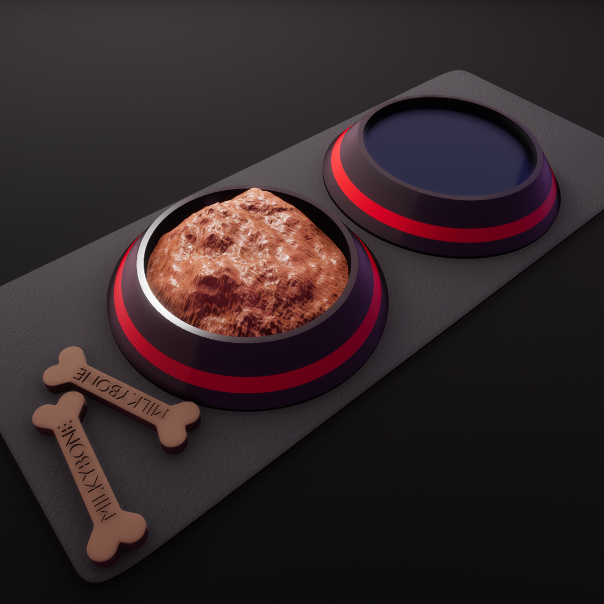 Realistic dog food bowls and eating area, has milkybone treats, food, water and mat. Has collision. Handmade textures and normals included. You can tint any colour without losing textures.