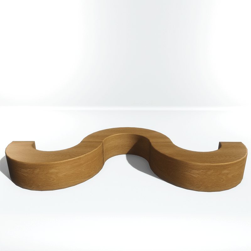 A versatile semi circle bench, made from a solid block of wood. It's modular: several units can be combined and arranged in different ways (see photos). With collision. Take a look here: https://atlas.sansar.com/experiences/luise/studio-lamda