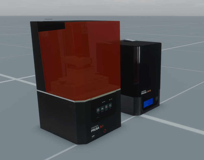 Prusa SL1 Printer w/ Wash and Cure station. See it at https://atlas.sansar.com/experiences/brocker/idea-hub