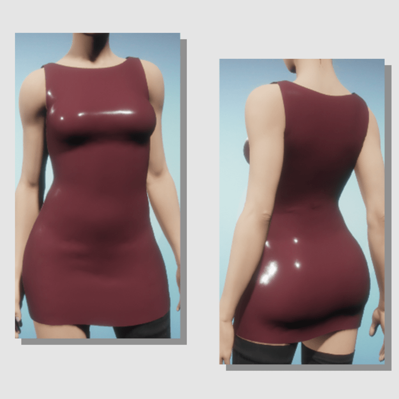 A simple short dress with a shiny (latex-like) finish.