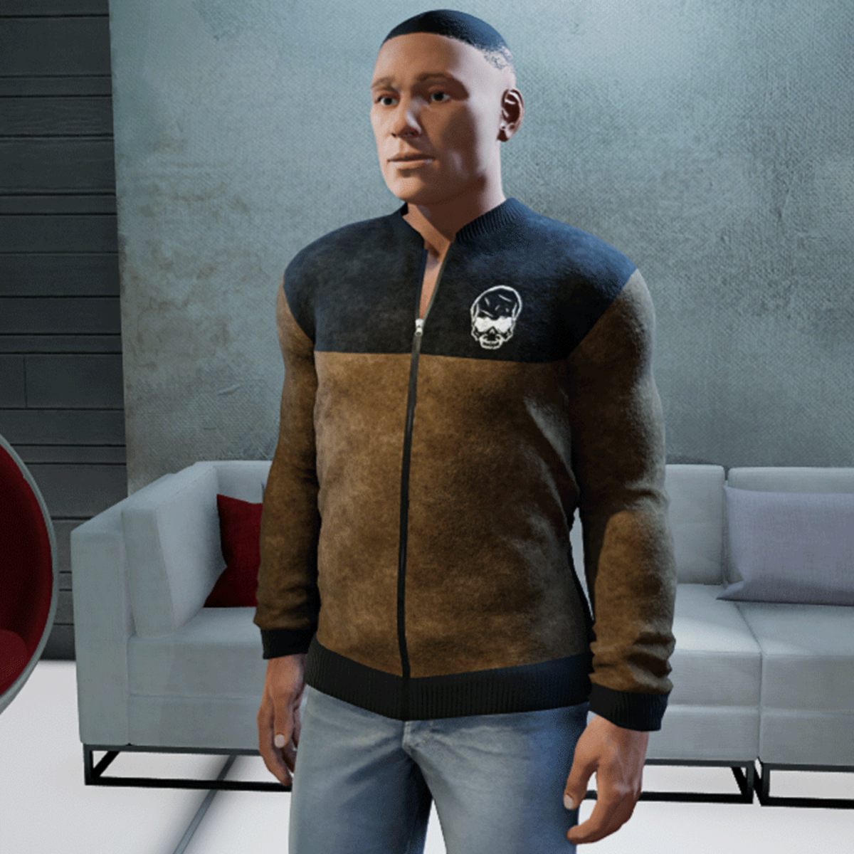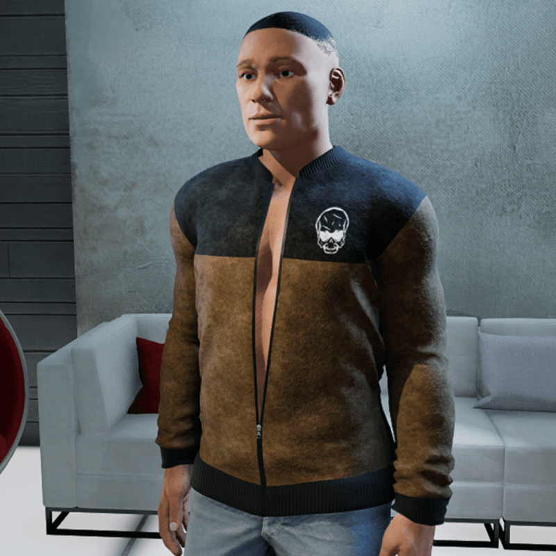 High quality jacket made of suede and with shiny Skull and working zipper, Wear your jacket open or closed. Please don´t forget the ratings ;) Feel free to simulate the clothes before wearing it to adjust it optimally.