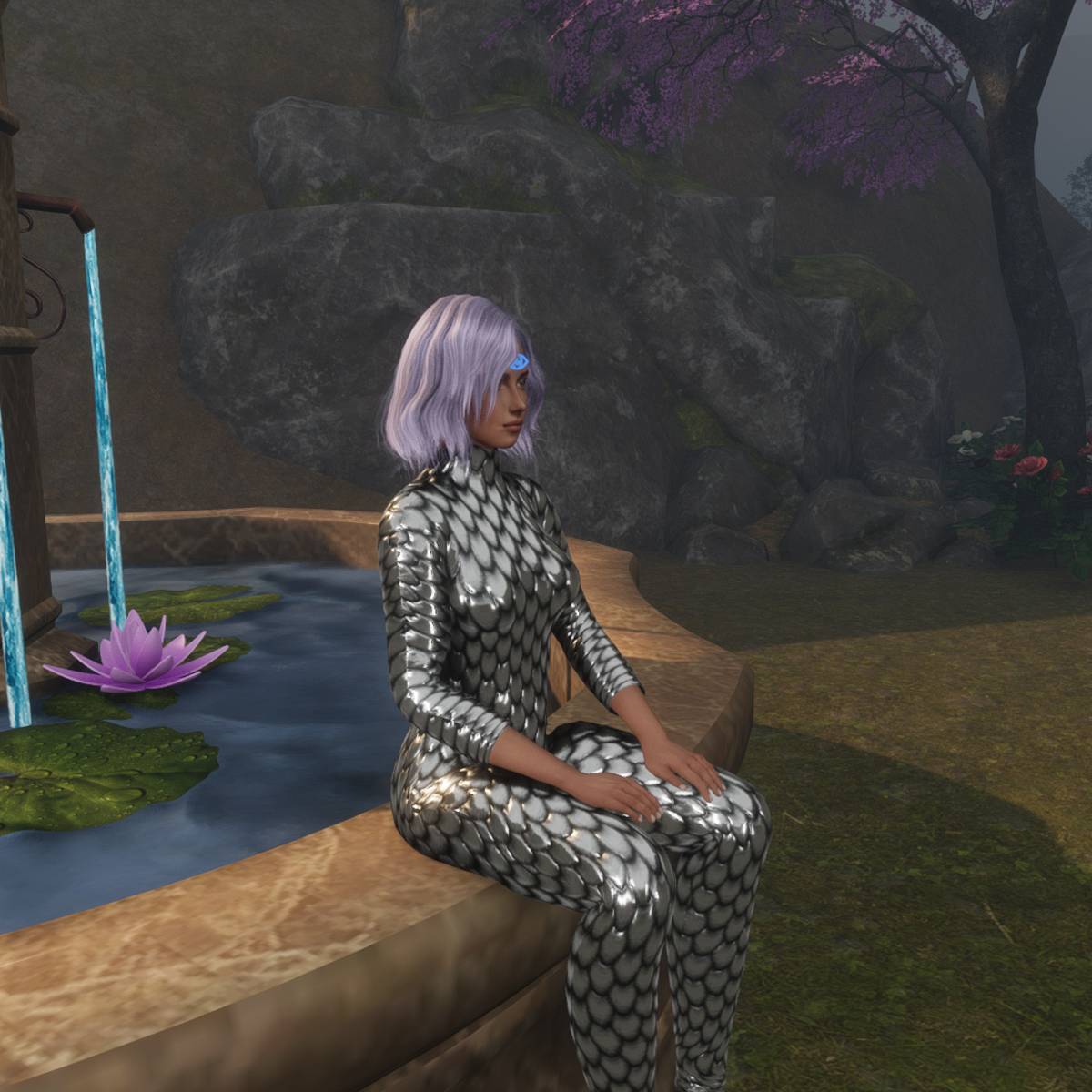 Jumpsuit with shining silver dragon scales.Tested on Alina avatar by Cora. Created in Marvelous Designer so you can adjust to your needs.